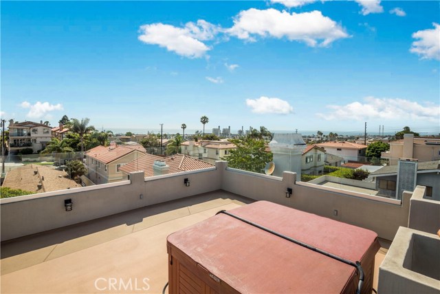 Welcome to this beautifully appointed South Redondo Beach home, freshly painted and ready for move-in. From the moment you enter, an elegant staircase and warm wood floors lead to an inviting open-concept living space designed for comfort and modern living. The main level features a seamless flow between the living room, dining area, and gourmet kitchen, all centered around a cozy fireplace. High tray ceilings with detailed moldings enhance the sense of volume and elegance. Enjoy ocean breezes on the kitchen-level deck, or head up to the expansive rooftop deck—complete with a large spa tub, dramatic sunsets, and panoramic ocean views that stretch across the coastline. The primary suite occupies the entire upper floor and offers a peaceful retreat with its own fireplace and a luxurious spa-inspired bathroom. Two additional bright and spacious bedrooms are located on the entry level, each with generous closets and access to a sunny private backyard. Stylishly updated baths and thoughtful storage throughout add to the home’s appeal. Additional features include recessed lighting, high ceilings, wall-to-wall mirrored closets, a Ring doorbell, washer and dryer, a two-car garage with direct access, and two portable A/C units for added comfort. Situated on a friendly, tree-lined street close to award-winning schools, Whole Foods, the beach, and South Bay’s best dining, this home offers the perfect blend of style, function, and coastal living.
