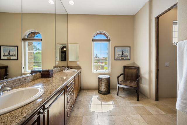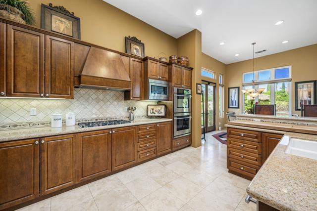 Currently available all months. November and December for $8,500 per month. An exceptional opportunity to lease a resort-style estate in the heart of La Quinta's exclusive Palms Golf Club. Nestled behind the gates of this boutique, low-density golf community, this sprawling compound spans over half an acre and is thoughtfully designed for luxurious desert living, effortless entertaining, and ultimate privacy. Surrounded by mountain vistas and lush, manicured grounds, the main residence offers approximately 5,000 square feet of open-concept living space, featuring 6 bedrooms and 5 bathrooms, including two expansive primary suites with spa-like en-suite baths and generous walk-in closets. The light-filled great room--with its dramatic ceilings, inviting fireplace, and seamless indoor-outdoor flow--connects to a chef's kitchen outfitted with slab granite countertops, stainless steel appliances, and an oversized island perfect for casual meals and lively gatherings. Guests are treated to their own private havens with three attached casitas--each offering either a kitchenette or a separate living room, en-suite or shared bathroom, and dedicated entrances from the central courtyard, allowing for comfort, flexibility, and total seclusion. The outdoor spaces are equally impressive. Enjoy resort-caliber amenities including a sparkling pool and elevated spa, misting system, putting green, lighted palapas for evening lounging, a firepit, and a fully-equipped outdoor kitchen with bar seating. Whether hosting a crowd or enjoying quiet evenings under the stars, the home is tailored for year-round enjoyment. Additional highlights include two separate two-car garages, a dedicated golf cart garage, and ample guest parking--combining function with thoughtful design. Located within The Palms Golf Club, where membership is optional, residents may access one of the desert's most revered private courses--co-designed by Masters Champion Fred Couples and renowned architect Brian Curley. The intimate clubhouse features three dining venues, a welcoming bar, a fully stocked golf shop, and a vibrant social calendar, making it a hub for both recreation and community. All just minutes from world-class golf, dining, shopping, and hiking, with quick access to Interstate 10 and the greater Coachella Valley. This one-of-a-kind property is the perfect desert escape--offering space, sophistication, and the rare combination of privacy and connection.