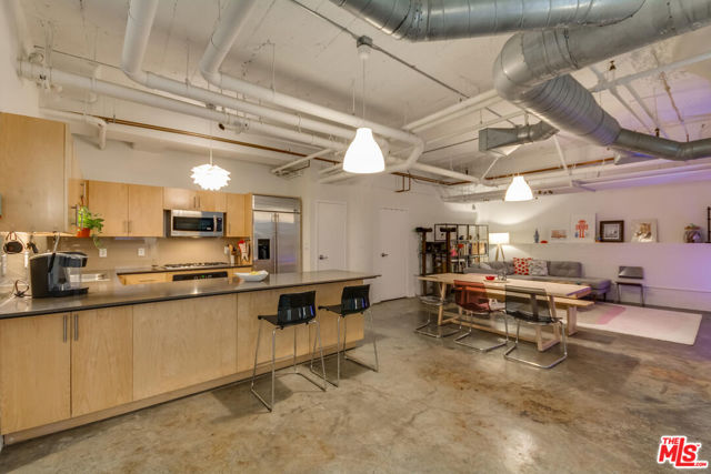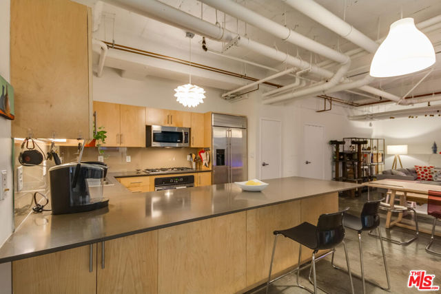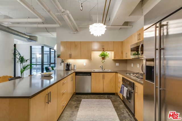 Unique courtyard-facing live/work loft at Grand Lofts. This quiet, below-grade unit is thoughtfully positioned along the interior courtyard, offering enhanced privacy and direct access to additional outdoor space - ideal for those seeking a flexible work-from-home or live/work environment. The layout lends itself well to creative, professional, or studio use while maintaining comfortable residential living.Inside, the loft features 10+ foot ceilings, floor-to-ceiling windows, original concrete columns with exposed A/C ducting, polished concrete floors, and a well-appointed kitchen with stainless steel appliances. A generous walk-in closet and in-unit laundry add everyday convenience. Enjoy close proximity to Social District dining, Crypto.com Arena and L.A. Live, Whole Foods, FIDM Park, Pico Metro Station, and more. Two side-by-side parking spaces included, along with access to shared amenities with the neighboring Aven building, featuring a three-lane lap pool, indoor-outdoor fitness center, beach volleyball court, half basketball court, dog play and wash area, business center, BBQs, and more.