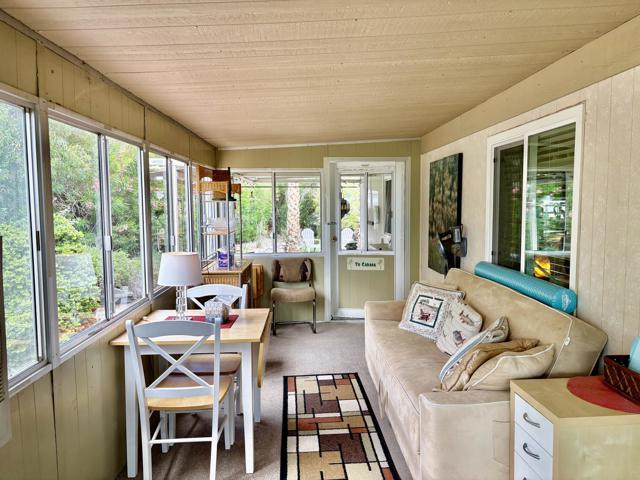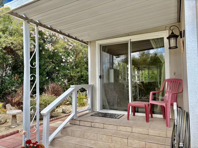 Welcome to Family Friendly Sky Valley Resort! This Beautiful 2 Bedroom, 2 Bathroom home is being offered Furnished. It is situated on a cul-de-sac and has fantastic views!Nice laminate wood flooring through out. Spacious Remodeled Kitchen with lots of Cabinets, Newer Appliances, and Stainless Steele Refrigerator. The Family Room has Large Windows to let in the Natural Sunlight and you can see the Pond & Mountains The Formal Dining Room has a nice Dining Table & Ceiling Fan The Primary Bedroom has a large Closet with Mirrored Doors & Ceiling Fan. The Primary Bathroom has been updated with a Beautiful Tiled Walk In Shower. There's a separate Laundry Room with Whirlpool Washer & Dryer. The added on Sun Room offers extra living space. It has a Evaporating Cooling System in addition to the Central A/C & Heating System Step outside to your Outdoor Living Area that is covered and has Nice Patio Furniture and a TV. In the backyard there's Artificial Turf and a one hole Putting Green.Mature Landscape all around and several Citrus Trees.There's a covered carport and also a Shed for extra storage.Sky Valley Resort is a Gated, Family Community. The Resort offers MANY Great Amenities including 13 Hot Mineral Pools & Spa's, Fitness Center, Sauna, Tennis Courts, Pickle Ball Courts, Horseshoes, Shuffleboard, Cafe, Chapel, & a Doggie Park. As a Resident you can Golf at the Sister Park, Caliente Springs, which is only a couple miles down the Road. The Property has Space Rent and is not on Leased or Fee Land. There is Space Rent of $1,068,./mo. Short Term Rentals are Allowed with Restrictions.Come out and explore the Amazing Desert Lifestyle. Palm Springs & Palm Desert is just 15-20 minutes away! You can get Financing on this Property! Call for more details!