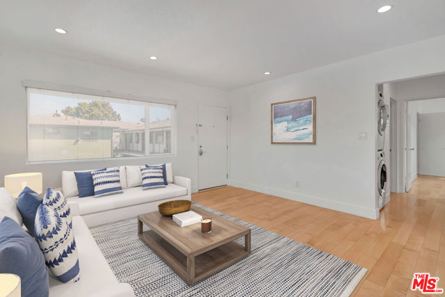 Live just steps from the sand on one of Venice's most coveted walk streets, less than a one-minute stroll to the beach and boardwalk, yet tucked into a peaceful, private setting. This unfurnished, top-floor modern residence was originally the owner's unit and occupies the entire north upper wing, offering the rare feel of a single-family home with no shared walls, no neighbors above or below, and four exposures that flood the space with natural light. Ten large sound-proof windows, 360-degree views, central air conditioning, and in-unit washer/dryer provide both comfort and privacy. The updated interior features eco-friendly maple floors, Caesarstone countertops, stainless steel appliances including new refrigerator, microwave, and dishwasher, fresh paint, wood shades, a separate dining area, and a small balcony off the living room. Enjoy access to a beautifully landscaped 4,000 sq ft communal garden with sand and ocean views, plus covered carport parking. Prime West of Main, South of Rose location - walk to Whole Foods, Gold's Gym, Gjusta, Rose Cafe, Jeni's Ice Cream, and the galleries, boutiques, and coffee houses of Main Street, Rose Avenue, and Abbot Kinney. Parking spot not included - available to rent for $100/mo