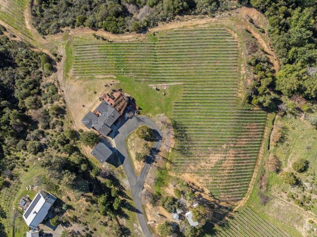 Acreage, Privacy, Views! 2000+ Sq Ft 3 Bed & 3 Bath with Private Office!! Enjoy Spectacular Views, Privacy, Nature, and Beautiful Sunsets. A private electric gate at the top of the driveway opens to a circular driveway, views of your vineyard, and panoramic vistas. The home features a Spacious Kitchen, Office Area, and a Nice Family Room with High Ceilings with Expansive Views and Wood Burning Stove. The Huge Primary Bedroom boasts an Ensuite Bathroom, Large Walk-in Closet and Slider to your Deck! Oversized 2+ Car Garage and Shop area provide ample storage and workspace with additional Bonus Room Above! Excellent Private Well. Current Grapes are being handled by a local winery. Local winery can continue handling the crop! Ready to Move-In today!