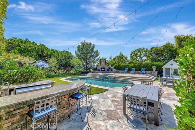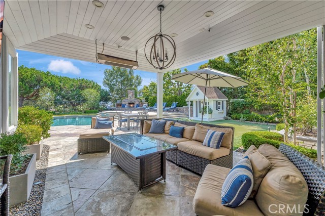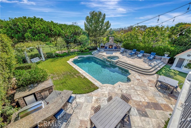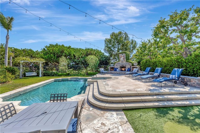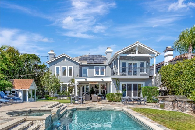 Set on a nearly 13,000 square foot lot overlooking the golf course, this exceptional fully furnished residence is located within the guard-gated Peninsula at Huntington SeaCliff. Almost 5000 square feet with 5 bedrooms + exercise room + bonus room + craft/utility room + office down with built-ins! Soaring ceilings, wood flooring, and abundant natural light with stunning golf course and backyard views. The great room features a cozy fireplace, formal dining with French doors to the California Room, and a large-screen TV for entertainment. The chef’s kitchen includes a breakfast bar, center island, stone and quartz counters, stainless steel appliances, walk-in butler’s pantry with wine fridge and second full refrigerator. The family room opens to the backyard BBQ area. The grand primary suite offers a private balcony overlooking the golf course, soaking tub, dual vanities, walk-in shower, and oversized walk-in closet. Additional bedrooms have ample closet space and private baths. Bonus and exercise rooms provide versatile spaces for work, fitness, or play, and the office is fully furnished and ready for remote work. Backyard paradise features a pool and spa with waterfall, outdoor fireplace, BBQ center, putting green, playhouse, and California Room with heaters and TV. Covered seating and cozy lighting create an ideal space for entertaining. Rent includes pool maintenance, and solar panels keep electricity bills very low. The home also features an EV charger, upstairs laundry plus secondary laundry in the garage, a long driveway for guest parking, and two separate 2-car garages (4 spaces total) with built-in storage. Just minutes from the beach, Pacific City, shopping, dining, freeways, and award-winning Seacliff Elementary School, this estate offers privacy, luxury, and move-in ready Southern California lifestyle.