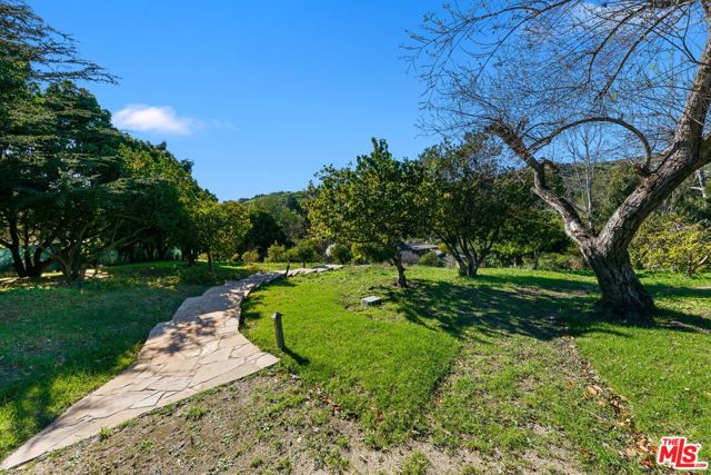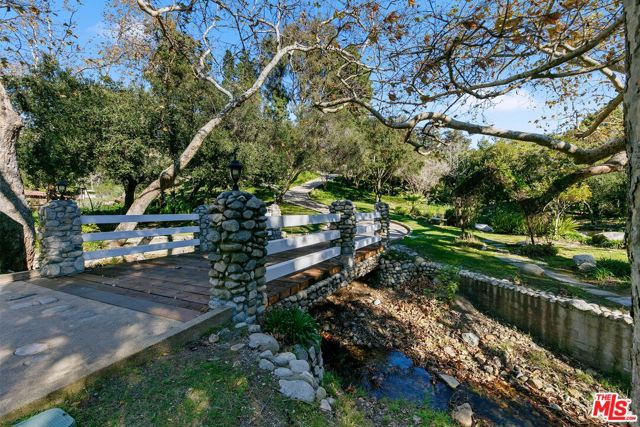 APPROVED AND PERMITTED COMPLETE WITH AN EXISTING GUEST HOUSE. Set behind gated access on a private street, this exceptional 5-acre parcel offers a rare blend of natural beauty, privacy, and coveted coastal proximity. The property features stunning, mature landscaping with towering trees, serene water elements including a tranquil pond and recirculating creek, and a large, grass-covered field that opens to an ocean view. Designed to feel like a secluded retreat, the setting provides remarkable peace and privacy while remaining just minutes from the beaches and amenities of Paradise Cove. A truly special opportunity to enjoy expansive land, lush surroundings, and close-in Malibu living. The subject property is an in-kind replacement + 10% replacing the single-family residence and guest house that existed prior to Woolsey. An approved Planning Verification Woolsey Fire (PVWF) replaces two structures, including a new 5,256 sq ft single-family residence, associated grading and retaining walls, and photovoltaic panels. The single-family residence is 24-ft in height. Additionally, a proposed 1,138 sq ft cottage is proposed and an existing auxiliary building and appurtenant structures equal 3,537 sq ft for a total development of 9,931 sq ft for the subject property. The existing bridge is to remain but reinforced and improved to meet the Fire Department access standards. The PVWF expires on November 8th, 2026. All building permits have been obtained. The OWTS (septic system) Plan Check expires on June 8th, 2026. All other permits (i.e. grading, access road, retaining walls, SFR, cottage, etc.) expires on May 18th, 2026. EXISTING GUEST HOUSE/AUXILIARY STRUCTURE OF APPROX. 1500 SQ.FT. CONSISTS OF 2 BEDROOMS, 1 1/2 BATHS WITH A DEN, LIVING ROOM AND CONVERTED GARAGE. PERFECT AS AN ONSITE RESIDENCE FOR A CARETAKER, GROUNDSKEEPER OR THE OWNER DURING CONSTRUCTION.