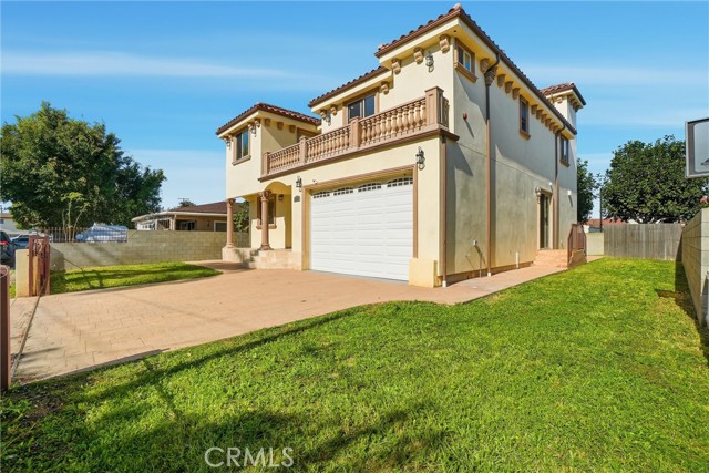 Craftsmanship, space, and versatility define this exceptional residence in Carson, ideally situated on a quiet small dead-end street. This five-bedroom, four and a half bath home offers approximately 3,000 square feet of living space, plus a rare approximate 1600 square feet basement that provides outstanding flexibility and potential. The home welcomes you with a striking wrought-iron double-door entry featuring operable glass panels for natural light and airflow. Inside, travertine flooring on the ground level, soaring ceilings, and architectural metal railings create an impressive foyer. The entry level is bright and open, featuring a ground-floor bedroom with ensuite, ideal for guests, in-laws, or a home office. The living room is designed for comfort and ambiance, showcasing a gas fireplace, powder room, dramatic inverted recessed tray ceiling, and sliding glass doors that lead to the backyard. Just a few steps up, the kitchen offers easy access for everyday living and entertaining. The dining and kitchen areas flow seamlessly, including a formal dining room with architectural tray ceiling, direct kitchen access, a versatile pantry space ideal for a coffee or beverage bar, and sliding doors opening to the side and backyard. A breakfast area with a bay window adds warmth. Upstairs, a bright landing includes linen storage and a convenient laundry chute. Secondary bedrooms are bright, with two enjoying access to a front balcony with craftsman-style column railings, perfect for morning sun or evening stargazing. The primary suite is an expansive, resort-like retreat, featuring double-door entry, space for a sitting area or library, ensuite with dual vanities, soaking tub, separate shower, walk-in closet, and a laundry chute. A private rooftop balcony extends the living space outdoors ideal for yoga, coffee, or quiet relaxation. A rare, oversized basement, divided into three areas, adds a level of versatility seldom found in the neighborhood ideal for recreation, workspace, creative YouTube channel, or storage. Completing the home is a gated two-car garage with high ceilings, additional driveway parking, a travertine front porch, and a backyard ready to be transformed into a custom outdoor oasis. Buyer to perform all due diligence and independently verify condition, permits, square footage, basement use, access, and any other material facts.
