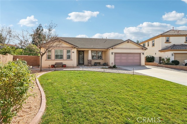 East Highlands Luxury Living Experience refined single-story living in this impeccably designed 4-bedroom, 3.5-bath residence, where elegance meets everyday comfort. From its captivating curb appeal to its thoughtfully curated interior, this home offers a seamless blend of sophistication and warmth. A private en-suite bedroom near the entry provides an ideal retreat for guests or multi-generational living. Formal living and dining rooms set an elevated tone for entertaining, offering timeless spaces for intimate gatherings or grand celebrations. At the heart of the home, the beautifully appointed chef’s kitchen showcases granite countertops, abundant custom cabinetry, and double ovens—perfectly designed for both culinary artistry and effortless hosting. The kitchen flows gracefully into the inviting family room, where a cozy fireplace anchors the space and creates a welcoming ambiance. Each bedroom is generously proportioned with soaring ceilings, offering comfort without compromise. The primary suite is a true sanctuary, featuring a spa-inspired bath with dual vanities, a soaking tub, and a separate glass-enclosed shower—designed for relaxation and rejuvenation. Step outside to a private backyard oasis, thoughtfully landscaped and framed by serene greenbelt views. A sparkling fenced pool and charming gazebo create an idyllic setting for tranquil mornings, elegant outdoor entertaining, or peaceful evenings under the sky. Situated within the highly acclaimed Redlands School District and free of HOA restrictions, this exceptional East Highlands residence offers luxury, privacy, and distinction in one remarkable offering.