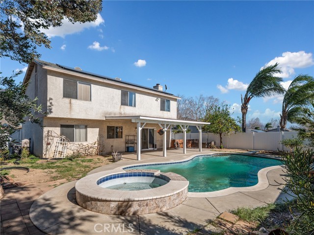Welcome to 2425 Hyatt Rd in San Bernardino—a turnkey, contemporary two-story home on a prime corner lot with RV access and an incredible backyard oasis! Offering approximately 1,704 sq ft, this home features 3 bedrooms and 3 bathrooms, plus a spacious loft that’s perfect for a second living area, home office, or game room. Enjoy a bright dining area and a welcoming family room with a cozy fireplace, complemented by laminate flooring, central A/C & heat, and an attached 2-car garage with direct access. Step outside and you’ll fall in love with the private backyard—complete with a covered patio, beautiful succulents, fruit trees, and a sparkling in-ground pool and spa—ideal for relaxing or entertaining year-round. The home has also seen many recent upgrades over the last few years, including a remodeled kitchen, updated main bath, owned solar, newer vinyl fencing, a replaced HVAC system (A/C, furnace, and air handler), a newer water heater, a water softener, plus pool equipment improvements such as a new pool heater heat exchanger, along with fresh laminate flooring in the primary bath. Additional highlights include a spacious driveway and a great neighborhood setting. This one checks all the boxes—pool + spa + RV parking + corner lot—don’t miss it!