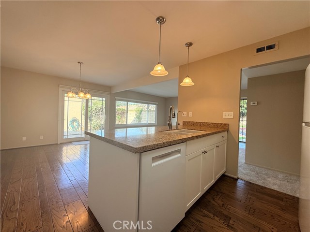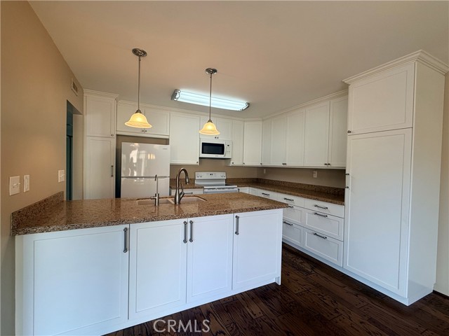 Beautiful one story end unit Tiburon Townhome for lease. Remodeled and upgraded throughout. Kitchen features granite countertops, newer cabinets with pull-out shelves in the pantry, new dishwasher, newer stove, built-in microwave. New neutral carpet in living room, family room, bedrooms and hall. New laminate flooring in both bathrooms. Both bedrooms have recessed lighting, mirrored wardrobe doors and closet organizers for maximizing space. Hardwood flooring in kitchen and dining room. Two car garage with direct access through patio. Tiburon community has 5 pools, playgrounds and lots of greenbelt areas. Conveniently located near shopping and freeway access.