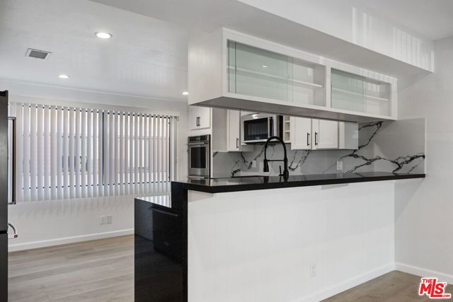 This fabulous & renovated 3-bedroom, 2.5-bathroom, townhouse will take your breath away! From the well-groomed grounds to the impeccable living quarters, the entire complex is designed with you in mind. The huge split-level living room has an inviting fireplace and a sliding glass door that leads out to a private patio. On the next level the dining room looks down on the living room and opens to the stunning kitchen. There is a wet bar in the dining room, and directly next to it is the powder room. This townhouse is outstanding for entertaining! The kitchen is fully equipped with a double-door fridge, stovetop, dual ovens, microwave, dishwasher, and wine chiller, and just off the kitchen is the utility closet with a side-by-side washer and dryer. The upper level is where you'll find all three bedrooms. The primary suite is impressive, featuring a Juliet balcony with a bird's-eye view of the neighborhood. There is also a large closet with mirrored doors. The relaxing en-suite bathroom includes dual sinks, the vanity mirror has integrated lighting, and it includes a five-function shower to boot! The other bedrooms are nicely sized with large closets with shelves at the top. Some of the other absolutely stunning details are the central A/C, beautiful wood and marble floors, recessed lighting, and vaulted ceilings throughout. The two-car garage has built-in shelves with direct access to the townhouse. This lovely complex has a pool, spa, racquetball courts, and lush landscapes. It is located in a premier neighborhood, offers seclusion and tranquility, and is located minutes from Culver West and Playa Vista.