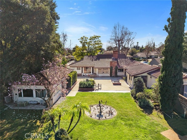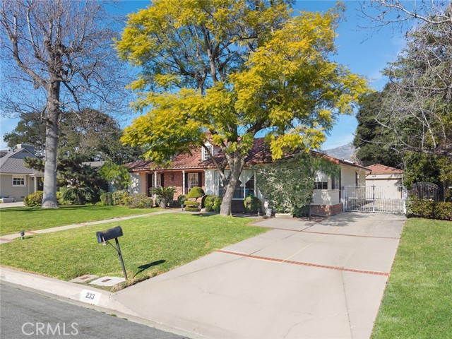 Situated on a quiet, tree-lined street, this beautifully remodeled single-level home offers timeless charm with modern comfort. Set on a generous 17,580 sq ft lot, the property provides privacy, space, and an ideal layout for both everyday living and entertaining. The residence features 4 bedrooms and 4.5 bathrooms with an expansive floor plan highlighted by a spacious living room with a marble fireplace and a formal dining room accented by a striking chandelier and bay window. Thoughtful updates include recessed lighting, crown molding, window shutters, new flooring and extensive use of marble, granite, and custom woodwork throughout. The well-appointed kitchen is equipped with custom cabinetry, granite countertops, stainless steel Wolf range and ventilation system, and a large breakfast nook with built-in bookshelves. A sizable family room offers a handcrafted full-service bar, marble fireplace, beam ceilings, oakwood-paneled walls, and sliding doors that open to the beautifully landscaped rear gardens. The primary suite is privately located in the north wing and features three closets and two bathrooms. A separate guest house with its own bathroom adds flexibility for guests or extended family. Additional highlights include a home office with custom bookcases with Chestnut tree wood and a lush backyard framed by mature trees and manicured hedges. Conveniently located within walking distance to Longley way elementary schools, shopping, and the library, this exceptional Arcadia home blends elegance, comfort, and location.