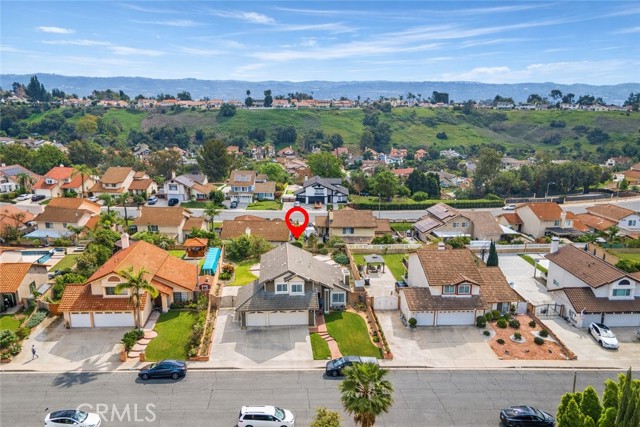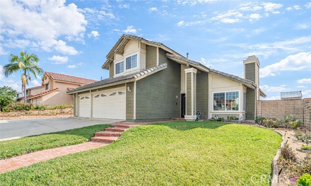 Welcome to 19528 Spinning Wheel Rd, a charming mountain-view single-family residence located on a quiet and well-kept street. This home features a 3-car garage, spacious front yard with ample parking, and gated access to the backyard—ideal for RV or boat parking. Offering approximately 1,612 sq ft of living space, the home showcases a high-ceiling living room, open living and dining areas, and large windows with views of the backyard and pool. The well-maintained kitchen overlooks the pool and connects to a cozy family room. A convenient powder room and direct garage access complete the main level. All three bedrooms are located upstairs. The primary suite features vaulted ceilings, mountain and pool views, and a private updated en-suite bathroom with a soaking tub. Two additional generously sized bedrooms share an updated hallway bathroom The backyard is perfect for entertaining with a newer patio, sparkling pool, fruit trees, and landscaped grounds, situated on an approximately 8,845 sq ft lot. Prime location within walking distance to Creekside Park and top-rated Stanley G. Oswalt Academy (K–8). Close to shopping and dining. Low property tax, no HOA. A rare opportunity not to be missed!