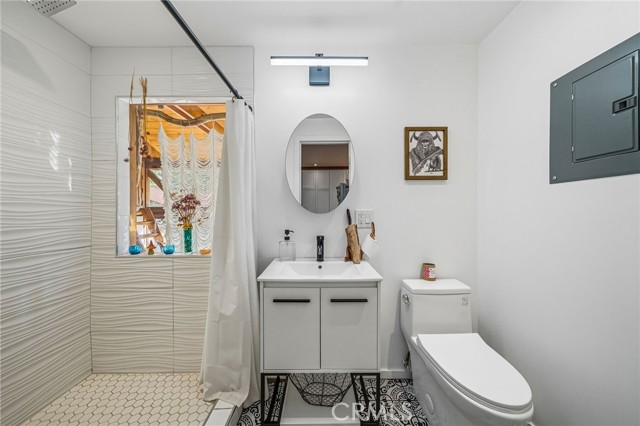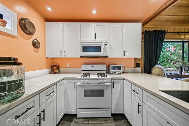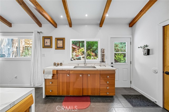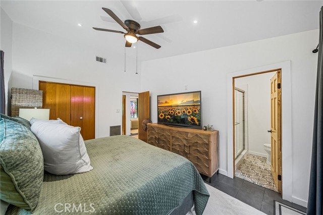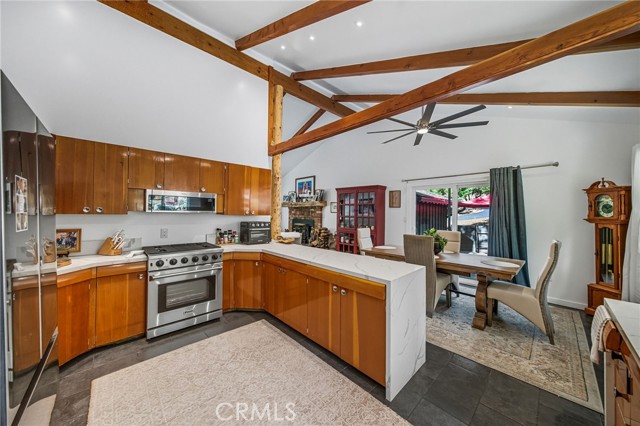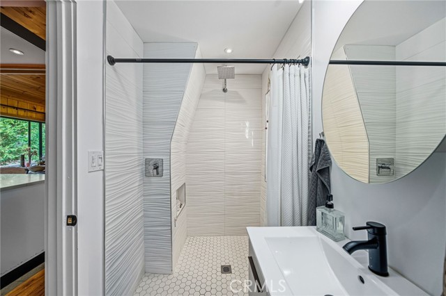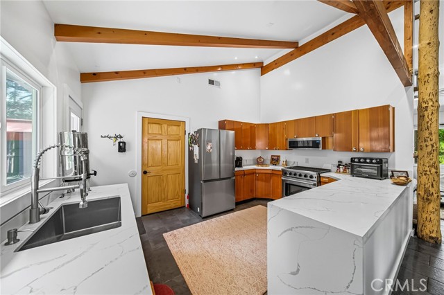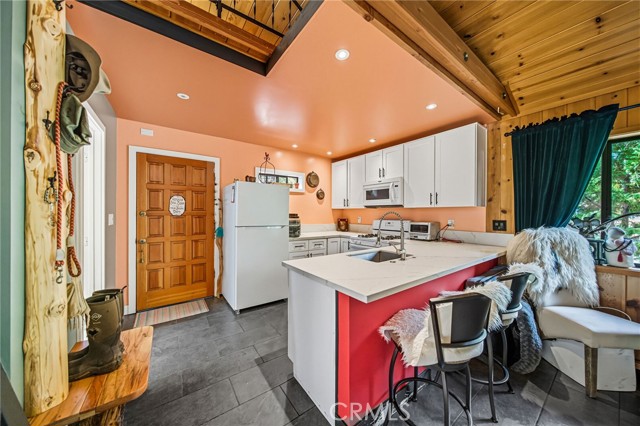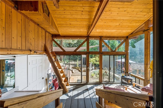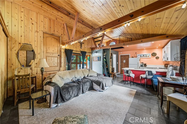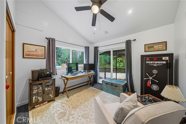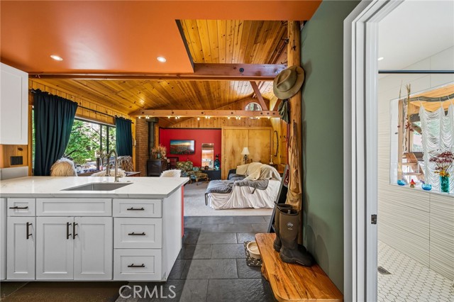 Discover a truly enchanting mountain retreat at 25106 Rim Rock Rd, nestled in the serene Fern Valley of Idyllwild. This exceptional property offers two remodeled, rustic modern cabins on a spacious .51-acre lot, providing the perfect escape for the entire family. The main cabin is a charming 3-bedroom, 1.75-bath home featuring vaulted and beamed ceilings that create an airy, open feel. The living room, with its cozy brick fireplace, flows into the dining area and an updated kitchen complete with stunning waterfall-edge counters and ample cabinetry. Sliders from each bedroom bring the fresh mountain air indoors. Step outside and you'll find a truly magical guest house with 2 bedrooms, 2.75 baths, and a sleeping loft, perfect for hosting guests or a rental. An incredible atrium floods the space with natural light and opens to an oversized backyard where you'll discover a whimsical mushroom play structure—fun for all ages! The property also includes an outbuilding for storage, a 1-car garage, and breathtaking views of Suicide and Lily Rocks. Both homes have been thoughtfully updated with a new 40-year roof on the main house, new electrical panels, updated septic systems (two septic tanks, one for the front house, one for the back), and air conditioning. Additional upgrades include a tankless water heater, new decks and railings, and a host of other improvements that make this a turnkey property. Don't miss this opportunity to own a one-of-a-kind Idyllwild gem!
