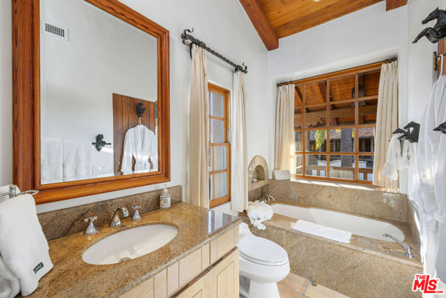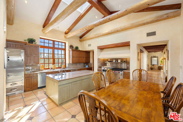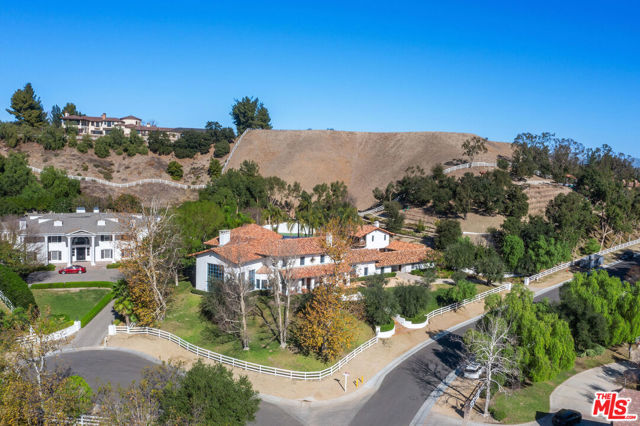 The Hacienda. Welcome to this move-in-ready Spanish timeless masterpiece, a true pinnacle of Spanish country architecture and design. Perched on a sprawling 2-acre corner lot in the exclusive Ashley Ridge section of the 24-hour guard-gated Hidden Hills, this Wallace Neff inspired custom California-style Hacienda spans approximately 9,402 square feet of unparalleled craftsmanship and elegance. Nestled in total privacy and serenity, this stunning estate seamlessly blends indoor and outdoor living, centered around a picturesque 2-story fountain courtyard perfect for hosting dinner parties and gatherings. The grounds feature covered outdoor spaces, a swimmer's pool and spa, and a beautifully manicured lawn ideal for play or relaxation amidst mature trees that attract songbirds and pollinators, enhancing the tranquil ambiance. The main residence offers six luxurious bedrooms, including an enormous primary suite, or an optional five en-suite bedrooms and a library/office, along with seven baths. Highlights include a dramatic, wood-beamed 2-story great room, a cozy theater, a large formal dining area, and an open, light-filled chef's kitchen equipped with top-of-the-line stainless steel appliances. A family room with an adjacent butler's pantry and a mudroom/laundry room complete the home's functional yet luxurious layout.The property's extensive amenities extend to a 2-story guest house, which includes a living room, dining area, second kitchen, second washer/dryer, steam shower, powder room, two fireplaces, and an upstairs en-suite bedroom with a hotel-style bath and covered outdoor veranda.Designed for ultimate entertainment and leisure, the estate boasts a newly resurfaced North/South tennis court with stadium seating (convertible into four pickleball courts), a vineyard with 200 mature cabernet vines yielding approximately 300 bottles of wine annually, and a charming tasting gazebo with breathtaking mountain views. A pub-style bar with commercial refrigeration and an adjacent subterranean wine cellar further enhance the lifestyle this estate offers. Car enthusiasts will revel in the private auto motor court featuring eight bays, including a 5+ car garage, workshop, and storage bays. Throughout the home, timeless details abound: seven fireplaces, vaulted truss and lodgepole high ceilings, beveled glass doors, dual-glazed windows, solid hardwood, and paver flooring, showcasing its meticulous design and craftsmanship.Experience the exclusivity of Hidden Hills with its vibrant community events, including a weekly farmer's market, summer BBQs, musical theater, and more. This property is a rare gema fully furnished, one-of-a-kind Spanish masterpiece offering unmatched privacy, timeless elegance, and world-class amenities. There is truly nothing like it among the grand estates of Hidden Hills. The Rental Property Owner seeks a long term lease agreement only. RPO prefers a 2 year lease minimum but may possibly consider 18 months.
