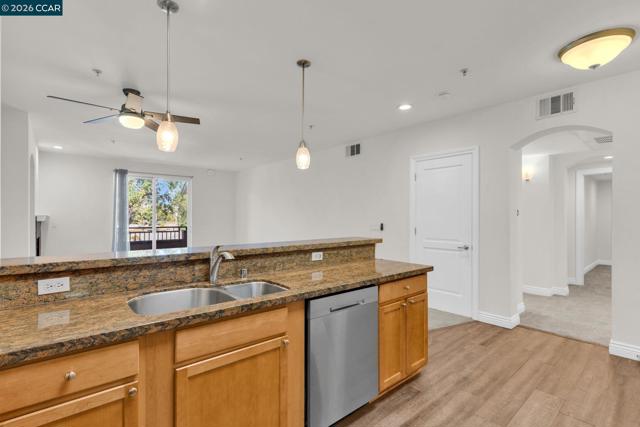 Beautiful newer top floor condo with no one above you. Very well maintained building bright and airy unit offering 2 bedroom plus large bonus room ( could be 3rd bedroom ) with a walk-in closet, an office, 2 full bath, 2 designated parking spaces in gated garage , washer and dryer, and spacious kitchen with granite counter and SS appliances. Very conveniente building with elevator to the 3rd floor with no steps, exercise / gym facilities, water & garbage included, bike cage area, and guest parking in the garage. Walking distance to trail, top rated schools, close to Kaiser Permanente facility, downtown WC, shoppings, restaurants, bart station, bus station and freeways (680 & 24 ). Available for immediate occupancy. Must have good credit history. Apply with RentSpree https://apply.link/6c0vZ1A