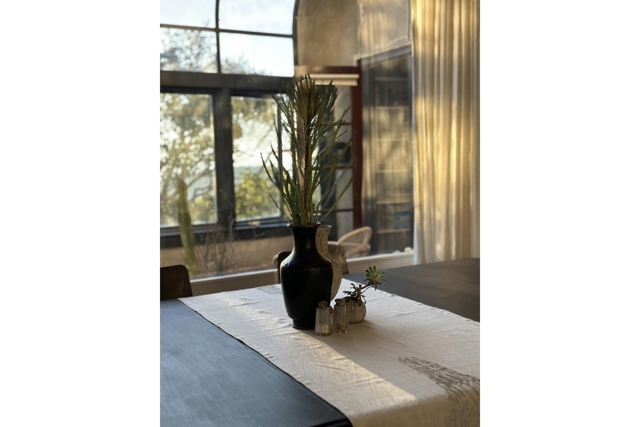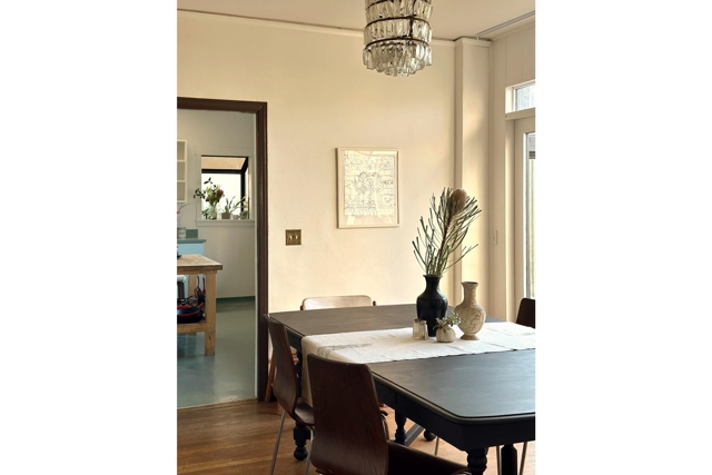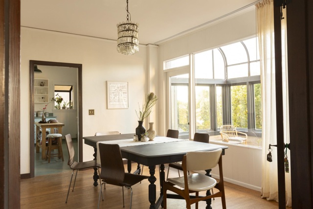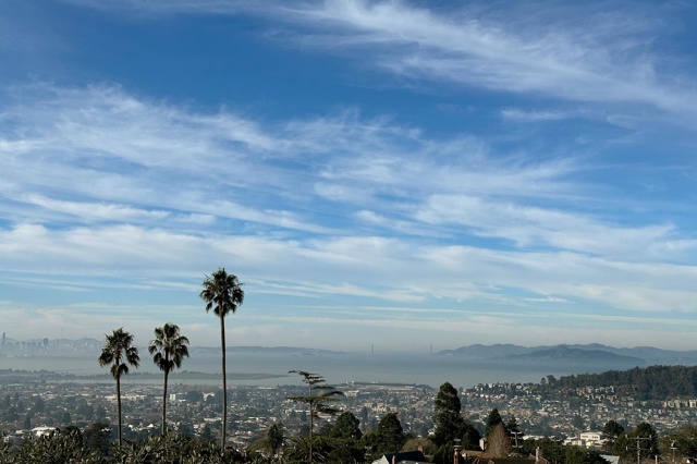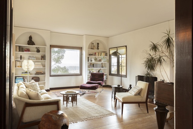 Sited on a quiet street in Berkeley’s coveted Thousand Oaks neighborhood, this stately & artistic residence enjoys sweeping panoramic Bay views & is surrounded by lush gardens, volcanic rock and mature trees.Evocatively furnished by its owner, a celebrated style icon, the home is offered with a remarkable collection of furniture, art, and contents, all included with the sale. Impressive, tiled entry with cathedral-style windows and an elegant staircase creates a dreamy & poetic ambiance. Sun-filled LR opens to romantic winter garden with stunning Bay Vistas. Dining rm and vintage kitchen connect seamlessly to charming bfast room w. side deck. Upstairs features an inspiring glass-walled artist’s studio and three bedrooms rich in color, texture, and artistic detail, all overlooking the Bay. Dramatic lower-level multi-use space offers tall ceilings, concrete floors, a striking minimalist bath, and opens to a lush patio and garden retreat. Extensively updated yet filled with soulful patina, this rare and magical property is ideally located near Solano Avenue, gourmet shops, scenic paths, and the natural beauty of the Berkeley hills.