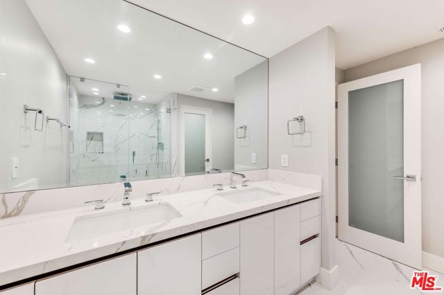 Completely Remodelled, updated and redesigned with new top of the line stylish modern finishes. Spacious light and bright front unit facing Century City. Open space concept living and dinning room that opens to large front balcony facing Century City. Large size breakfast room adjacent to kitchen in addition to formal dinning room. This is perfect unit for entertaining large crowed. Featuring large 2 bedrooms and 2.5 baths, walk in closet in master suite and extra large master bath shower. Modern style kitchen with top of the line appliances. Newly installed stylish double pane windows and doors, and wide plank flooring and recess lighting through out unit. Private laundry room inside unit with new side by side washer and dryer. Two side by side parking in secure gated garage. Walking distance to Century City shopping centre. You will love this unit on your first Walk-in tour.