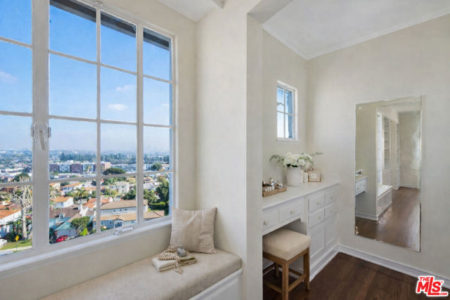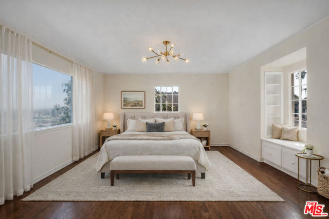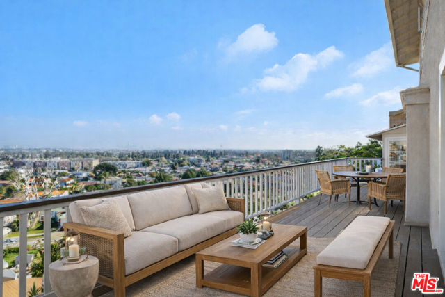 Perched in the highly coveted historic View Park neighborhood, this stately traditional 5-bedroom, 5-bath residence offers breathtaking, expansive city views stretching across Downtown Los Angeles and beyond. Thoughtfully designed with a seamless, flowing floor plan, nearly every room captures stunning skyline vistas creating a dramatic yet serene backdrop for daily living and entertaining. The main level is ideal for hosting, anchored by a chef's kitchen featuring an oversized center island, custom cabinetry, elegant pendant lighting, a side-by-side Sub-Zero refrigerator, warming drawer and a professional-grade Wolf range oven. Adjacent living and dining spaces open effortlessly, framed by custom moldings, French doors, and refined architectural details throughout. The oversized living room impresses with coffered ceiling and timeless craftsmanship, while contemporary decorative lighting adds a modern touch. All five bathrooms have been beautifully updated, and the home is equipped with central heat and air for year-round comfort. The flexible layout includes 3 bedrooms and 2 baths upstairs, a bedroom/study, power room & full bath on the main level, and a lower level with the 5th bedroom, full bath and family room that opens directly to a quaint covered patio and the backyard where expansive city views continue to steal the show. Centrally located 15 minutes from Beverly Hills, the beach cities, Downtown Los Angeles, and LAX...this exceptional home combines classic elegance, modern convenience, and an unparalleled location in one of Los Angeles' most sought-after neighborhoods.