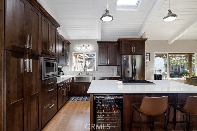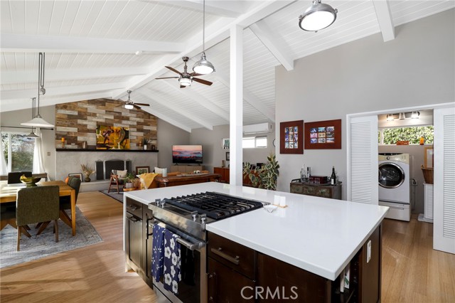 Experience Modern Luxury in the Heart of Lakewood Village, this beautifully remodeled residence in the highly coveted Lakewood Village neighborhood of Long Beach offers the perfect blend of mid-century charm and contemporary resort-style living. The Ultimate Chef’s Kitchen & Great Room Step inside to a stunningly remodeled, open-concept gourmet kitchen that serves as the heart of the home. Featuring a massive social island and sleek modern finishes, the kitchen flows seamlessly into the expansive "Great Room" family area. Anchored by an impressive concrete fireplace with striking tiled wall and cozy corner window bench, this vaulted-ceiling space is flooded with natural light and designed for high-end entertaining. A Backyard Oasis: Your Private Garden- Rarely do you find a lot of this size (over 9,000 sq ft) in Long Beach. The sprawling, park-like backyard has been transformed into a private retreat. Whether you’re hosting guests on the large flagstone patio, gathering around the outdoor fireplace or strolling through your own "private gardens" to the sounds of the water flowing into your pond, this space is an entertainer's dream. Modern Comforts & Key Features: Move-In Ready: Freshly painted inside and out with gorgeous new flooring. Climate Control: Energy-efficient Mini-Split systems for year-round comfort. Primary paradise: A serene retreat featuring that opens directly to the covered patio and garden. Turnkey Details: Skylights in bathrooms, dedicated indoor laundry room with its own bath, and low-maintenance "curb appeal" landscaping. Location, Location, Location Nestled on a quiet, tree-lined street in "The Village", you are minutes away from the best of 90808. Education: Close to award-winning schools (Mark Twain, Bancroft) and LBCC. Lifestyle: Easy access to Heartwell Park, The Hangar at LBX, and local favorites like Panvimarn Thai and Dale’s Diner. Commuting: Ideally situated near major freeways and the Long Beach Airport for effortless commuting.