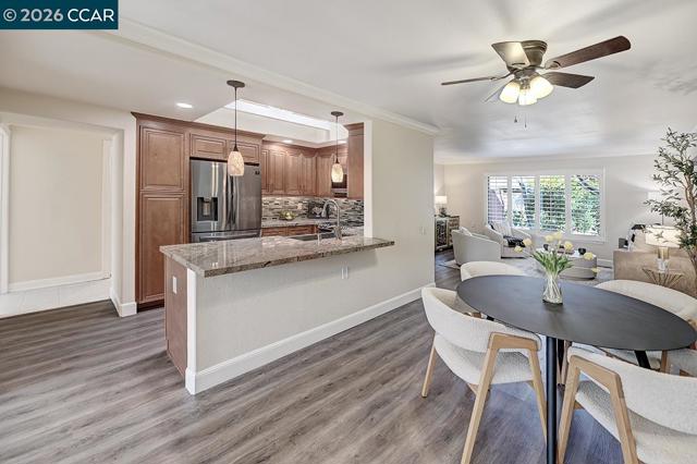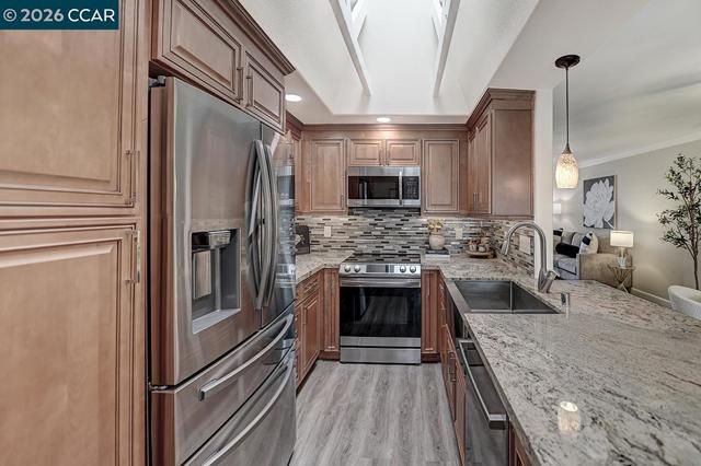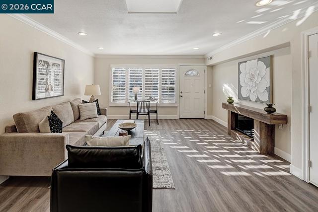 Wake up in the heart of it all—this home sits directly across from the Gateway Clubhouse, where community, connection, and daily life unfold. From morning classes and coffee dates to seasonal farmers markets and movie nights, everything that makes Rossmoor special is right outside your door. This true level-in home welcomes you with a gated, private front patio—perfect for morning coffee, evening unwinding, or a small garden retreat. Inside, enjoy a thoughtfully designed kitchen with granite countertops, breakfast bar, and stainless-steel appliances. The primary suite includes a convenient half-bath en-suite, while the guest bath offers a walk-in shower and stackable washer and dryer. A guest bedroom on the opposite side of the home provides privacy and flexibility for visitors, hobbies, or a home office. Recessed lighting, plantation shutters, crown molding, and subtle upgrades throughout create a warm, polished feel—every detail designed to make daily living easy and enjoyable. A nearby carport with extra storage offers the added ease of a convenient rear entry, making coming and going simple and seamless. If you’ve been waiting for a home that offers not just comfort, but a lifestyle—one where you can truly live where you love—this is it!