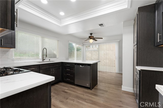 This beautifully remodeled home offers the perfect blend of quality, style, and modern convenience. Ideally situated in the heart of East Hills, this spacious 2,000 sq. ft. residence radiates charm and sophistication. Thoughtfully designed with an open floor plan, it provides an exceptional living experience, balancing comfort and functionality. The home is also perfectly located near Anaheim Hills' shopping, dining, parks, trails, and more. As you step inside, you’re greeted by soaring cathedral ceilings in the formal living and dining areas, creating an airy and welcoming atmosphere. The home has undergone extensive updates, seamlessly combining rustic charm with contemporary elegance. Recent upgrades include brand-new central air conditioning and heating, elegant wood flooring throughout, and a reimagined kitchen featuring quartz countertops, stainless steel sinks, and modern cabinetry. The exterior has been completely repainted, enhancing the home’s curb appeal, while fresh interior paint, new windows, and stylish blinds complete the updated look. The eat-in kitchen is a standout feature, boasting quartz countertops, recessed lighting, and a seamless connection to the cozy family room. Here, a gas fireplace provides warmth and ambiance, and sliding glass doors open to a large backyard,perfect for entertaining or enjoying private relaxation. The first floor also includes a chic powder room, an inside laundry room, and direct access to a 3-car garage with newly installed epoxy flooring. Upstairs, you’ll find three spacious bedrooms, including a luxurious master suite with vaulted ceilings, a walk-in closet, and a beautifully updated all bathrooms .The hallway bathroom features a quartz vanity and a skylight, bathing the space in natural light. With its extensive updates, including a freshly repainted exterior, and its prime location, this home effortlessly combines modern style and convenience for an unparalleled living experience. This immaculate home is ready for immediate move-in and promises a lifestyle of convenience and luxury. Positioned near exceptional schools, and with easy access to shopping, parks, dining, golf, and freeways 91,241 toll roads , this immaculate home is ready for immediate move-in and promises a lifestyle of convenience and luxury. Enjoy the best of Orange County in Anaheim Hills