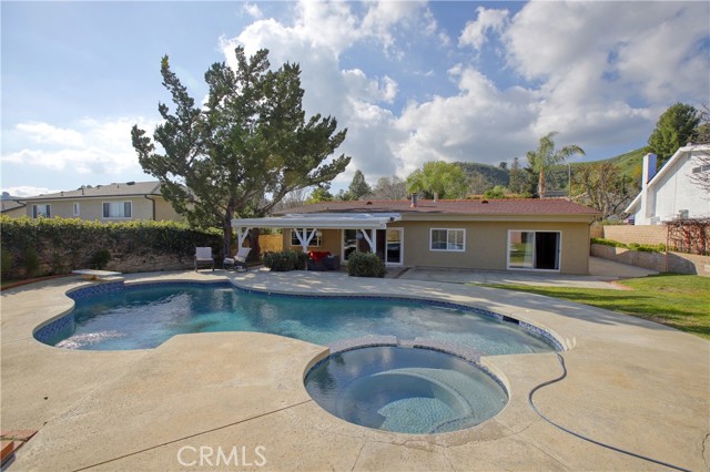 Hurry to Saratoga Hills' best single story feel good home which checks every box for your buyers' needs and wants! Coveted neighborhood and rarely does a one-story home become available. Move right into this contemporary home, ideal for those who love and enjoy the best of indoor and outdoor living. This perfect home is set on a very large all useable 10,215 square foot lot with pool, spa, grassy play area and large covered conversation patio area. Freshly painted exterior. Light and bright interior features a spacious living room with fireplace and adjoining large dining area. You'll love the cook's kitchen loaded with cabinetry, granite counters, marble tiled floors, stainless appliances, walk-in pantry and greenhouse window overlooking the rear grounds. Entertainer's family room adjoins the kitchen and includes marble flooring, redone fireplace, built-in unit with shelving and double slider overlooking the backyard. Romantic primary suite has peaceful views of the rear grounds and features double door entry, hardwood flooring, enormous wall to wall bank of slider closet space, slider to backyard and cool spa bathroom with pedestal sink and oversized shower. Secondary bedrooms have ample closet space, hardwood flooring including Brazilian Cherry and share a large 3/4 bath with Modern Bathroom vanity and oversized shower. Bedroom 4 currently being used as shoe closet, but includes a window and closet and was converted from Garage Space #3 by former owner. Outside provides the best of everything for those who love to entertain with spectacular grounds including pool, spa, grassy play area, fig and loquat trees, green grape vines, side dog run and great covered patio ideal for dining and great conversation. All this and many systems updated 10 years ago including dual zone CR/FA, recessed lighting, tank-less water heater, redone pool, windows and doors and plantation shutters. Enjoy all that the community has to offer with easy access to Grape Arbor Park that includes large green open park areas, volleyball, basketball, baseball/soccer field, play area and covered picnic spot. Nearby Las Virgenes schools, shopping, restaurants, The Calabasas Commons and easy access to Malibu. HURRY...won't last!