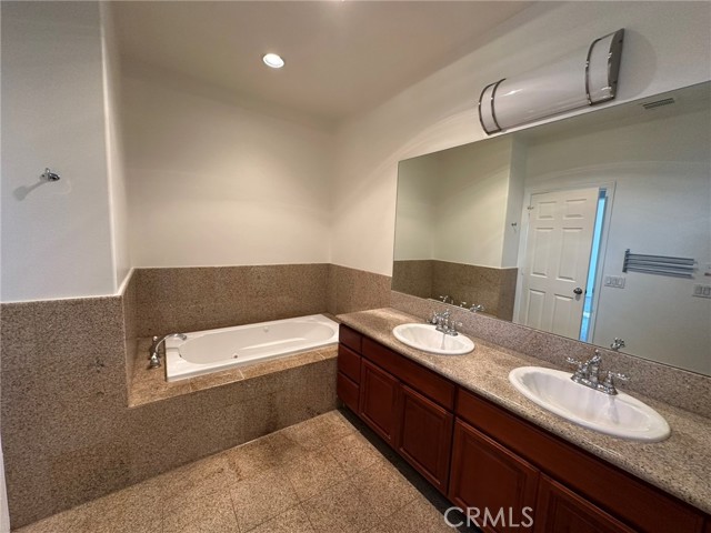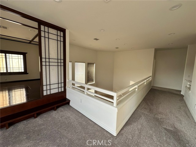 Beautiful home ready for immediate move-in! Interior of home has been thoroughly repainted. This home features carpeting in upstairs hallways & bedrooms, with hardwood downstairs. The entryway leads to a living room that features bay windows. The family room has lofty ceilings and a multitude of windows for ample sunlight. Kitchen has modern fixtures, granite countertops, and recessed lighting. All bedrooms have adjacent bathrooms and spacious closet areas. Downstairs bedroom includes direct access to the backyard. Main bedroom upstairs includes a decorative balcony overlooking the front yard and a bathroom with double sinks, a soaking tub, shower seating, and a separated toilet area. The open loft area provides a connection to the family room downstairs. A special feature in this home is the bonus room styled as a Japanese tea room, with a rising table, sliding doors & window covering, and wood throughout.