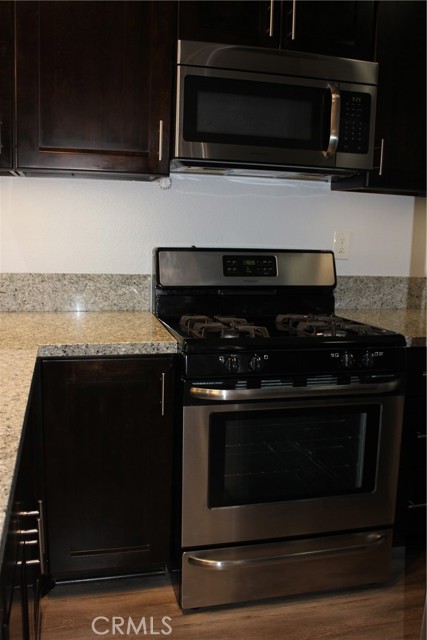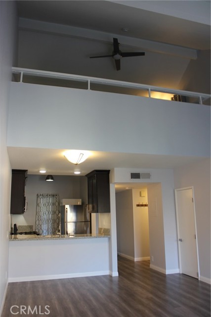 Beautifully upgraded, immaculate Orange Tree condo. This 1 bedroom condo is one of the largest single bedroom units with an upstairs loft that could be used as a 2nd bedroom or office. The elegantly remodeled kitchen features granite counters, under cabinet LED lighting, stainless steel sink & faucet, upgraded cabinets, self closing drawers, stainless steel refrigerator, gas stove, microwave, dishwasher & stackable washer & dryer. The entry, kitchen, living room & hallway feature beautiful grey wood laminate flooring. The living room features a cathedral ceiling, sliding glass doors leading to the balcony overlooking the stream below. The bathroom features a shower, tub, high end marble tile flooring, upgraded cabinets & sink hardware, mirror, towel fixtures & lighting. The bedroom, staircase & loft feature new plush carpeting. This incredible unit has upgraded interior doors with brushed nickel hardware. Designer lighting was used throughout the home. There are modern remote controlled ceiling fans in the bedroom & loft. The interior has been freshly painted with neutral color schemes of grey & white. This home also features a large bedroom closet with mirrored wardrobe door. There is also a large storage closet in the hallway and another generous sized closet under the staircase. The home also features a nest thermostat control system with forced air heating and air conditioning. Association amenities include 2 pools & spas on each end of the complex,6 lighted tennis courts, several basketball courts, a gym and clubhouse. The clubhouse includes a full kitchen and is furnished for meetings, parties or family reunions for a deposit. There is local bus service on Irvine Center Dr to the Spectrum for food, entertainment and shopping. It is also conveniently located near Northwood Town Center, UCI, Irvine Community College, Oak Creek Golf Course & freeways. This Information is deemed reliable, but not guaranteed. The Listing Agent & Broker have not verified the information. The Buyer & their agent are advised to investigate all aspects of the property, home, neighborhood, school boundaries, etc. to their satisfaction.