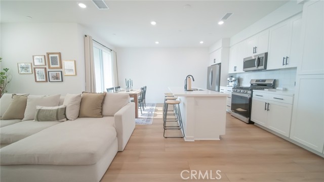 This 2024 construction, Olson Homes Masterpiece is located just minutes from the beach. This 3 bedroom, 3 bathroom townhome is nestled into one of Huntington's newest gated communities (HB Walk). The Tide floorplan offers 3 bedrooms with 3 full baths and 1,569 square feet of living space. The home was upgraded with premium light oak colored luxury vinyl flooring throughout and several other modern custom builder touches that bring style, comfort, and a luxurious feel. On the first level you will find the 2 car garage and a spacious foyer that leads out to the front porch and community green belt. The open second level features a great-room style living area with a large kitchen, expansive island with bar seating, family room, dining area, private balcony patio and high ceilings. A full bedroom and bathroom are also located on this level. As you continue to the third level you are greeted by a laundry room, a secondary bedroom with en-suite bath and the primary suite. The primary suite features a sitting area, expansive bathroom with walk-in shower and walk in closet. The home is conveniently located in the heart of Huntington Beach, near parks, schools, major shopping/dining options and the beach!