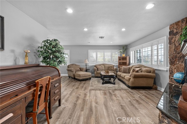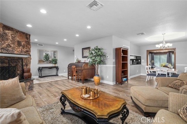 If you've been needing a Single Story Home that supports Multi Generational Living- THIS 5 Bedroom 3 Bath home OFFERING TWO PRIMARY SUITES with Two Living Areas IS IT! OH and an OVERSIZED 2 Car Garage PLUS RV GARAGE! Energy Efficient, too? YES SOLAR PAID! Tucked at the top of picturesque North Bench, this exceptional single-level residence offers a rare blend of elegance, flexibility, and privacy. The main executive suite (OR IN-LAW SUITE) is a true sanctuary, offering privacy and complete with Fireplace, Gorgeous Soaking Tub, Double Vanity, private access to the backyard, creating a seamless indoor-outdoor retreat. A second primary suite and two additional bedrooms and a third full bathroom provide ample space for family, guests, or creative use. The 5th bedroom has its own access as well and would also be a great DEN/GAME ROOM large enough for a pool table and right off the backyard as well. At the heart of the home, the expansive kitchen impresses with abundant cabinetry, generous counter space, a large center island, and a breakfast bar, creating the perfect gathering place for family and friends. Whether you’re hosting intimate dinners or grand holiday celebrations, the adjacent formal dining room provides an elegant setting to make every occasion memorable. Additional highlights include a well-appointed laundry room with extra cabinetry and a utility sink. Now, where is everyone going to park? An extra long driveway in front ...AND... a seperate driveway/easement to the BACK offering and Extra Wide and Extra Deep 2 Car Garage PLUS RV GARAGE awaits! Feel like youre in the mountains in this beautiful backyard featuring lush grass, mature fruit trees, and plenty of room to relax, play, or entertain—your own private escape surrounded by the peaceful beauty of Yucaipa’s hills. This home is truly a retreat—offering privacy, space, and refined living—all just in time to enjoy the summer season and priced under $800,000. A rare opportunity you won’t want to miss.