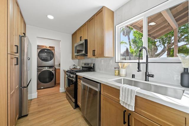 Welcome to this beautifully completely remodeled 2-bedroom, 2-bath home located in the desirable Peacock Hills 55+ community of Oceanside. This turnkey residence has been thoughtfully updated throughout and offers modern comfort, quality finishes, and true peace of mind. The home features a brand-new roof, adding long-term value and confidence for the next owner. Inside, the bright and open floor plan is enhanced by cohesive design elements and stylish upgrades that create a welcoming, contemporary feel. The fully remodeled kitchen showcases updated cabinetry, sleek countertops, and modern appliances, flowing seamlessly into the living and dining areas—ideal for everyday living and entertaining. Both bedrooms are generously sized, with the primary suite offering a private retreat and a beautifully updated en-suite bathroom. The second bedroom and bathroom have also been tastefully remodeled, making the layout perfect for guests, hobbies, or a home office. A standout feature is the indoor laundry, providing everyday convenience rarely found in the community. The low-maintenance outdoor space is ideal for enjoying Oceanside’s mild coastal climate, whether relaxing with morning coffee or unwinding in the evening. Peacock Hills is known for its quiet streets, strong sense of community, and convenient location near shopping, dining, medical facilities, and major freeways. The beach, Oceanside Harbor, and downtown are just minutes away. This move-in-ready home combines modern upgrades with the charm of one of North County’s most sought-after 55+ communities—an opportunity not to miss.