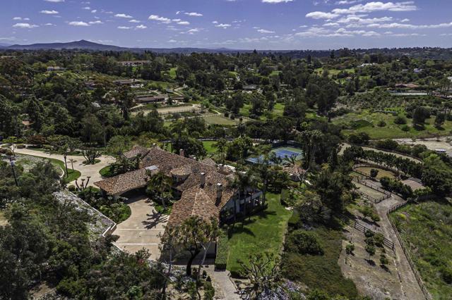 Rent This opulent estate, equestrian facility or the entire property! This location provides a secluded haven just moments away from conveniences and coastal attractions including the Del Mar Race Track, beaches and more! Easy direct access to over 58 miles of the RSF Trail system. Grand master suite boasts high-volume ceilings, private balcony, 2 fireplaces, and a spa-like bathroom. Fully remodeled kitchen features designer stone gas range & induction cooktop, & custom cabinets. Natural light floods the spacious rooms, showcasing serene pastoral views. Entertain in the elegant dining room or relax in the great room. Outside, indulge in the pool, Aquaponics system, tennis court and top-tier equestrian amenities: jumping arena, stone oversized barn w/caretaker quarters, direct trail access and multiple pastures and paddocks. Experience the ultimate lifestyle in Rancho Santa Fe This private family compound estate, on a sought-after street, offers all the advantages of a West Rancho Santa Fe Covenant location, with proximity to dining, shopping, entertainment, and beaches, & top-rated schools. Enjoy exclusive privileges of the RSF Golf/Tennis Club, private horseback riding/hiking trails., and full-time private roaming security patrol, This secluded estate sits on the trail system, exudes timeless elegance, featuring with 5 en-suite bedrooms including a fabulous master suite, plus an attached guest casita with 2BR 1 BA, FR, and kitchenette at the main level. At the end of the lower drive, you will fine world class equestrian, sports and entertaining facilities. (See documents for details) You will love the temperature-controlled wine cellar, multiple fireplaces, private balconies, and inviting pool. The beautifully appointed interior boasts graceful wrought iron doors, abundant natural light, and a casually elegant atmosphere. Kitchen includes Wolf state of the art appliances, Quartzite countertops, SubZero refrigerator & beverage fridge, Asko dishwashers. Welcome to your ultimate RSF retreat!