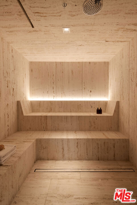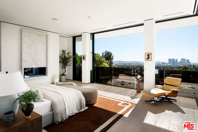 Exceptional design meets refined luxury in this brand-new Beverly Hills architectural masterpiece, set behind privacy gates on a secluded promontory with truly explosive panoramic city-to-ocean views offering the rare combination of dramatic vistas and effortless convenience just moments from the Beverly Hills Hotel and the heart of the city. Created by renowned architect Paul McClean with interiors by Waldo Fernandez, this one-of-a-kind residence is a study in meticulous craftsmanship and elevated modern warmth. Behind the gates, twin marble waterfalls frame a dramatic entry, leading to illuminated travertine paths and a striking glass bridge that reveals the home's stunning three-level design. Walls of glass, soaring wood-paneled ceilings, and contrasting accents create a seamless indoor-outdoor flow reminiscent of the world's finest private resorts. An elevator services all levels, enhancing ease and livability throughout. The main level features formal living and dining areas, a kitchen as well as a chef's kitchen with Miele appliances, wine cellar, and private office. Pocketing glass doors open to an expansive outdoor oasis with a full-length infinity pool, jacuzzi, baja ledge, and multiple dining and lounge areas overlooking the skyline ideal for hosting events, parties, and effortless gatherings with quick access for Uber and pick-ups. The upper level is dedicated to a serene primary retreat with a terrace, fireplace, spa-like bath, and dual closets, as well as a secondary bedroom. Below, a dramatic atrium anchors a complete entertainment and wellness floor with guest suite, gym, sauna, steam room, massage room, onyx bar, and a state-of-the-art private home theater - creating the ultimate "vacation-at-home" lifestyle. The home offers exceptional gated parking capacity, including an oversized garage and additional space within the motor court, providing rare flexibility for events, staff, and guest arrivals, all complemented by generous street frontage for convenient overflow parking. A rare opportunity to own a true trophy property offering unparalleled design, privacy, resort-level amenities, and unmatched proximity to the very best of Beverly Hills.