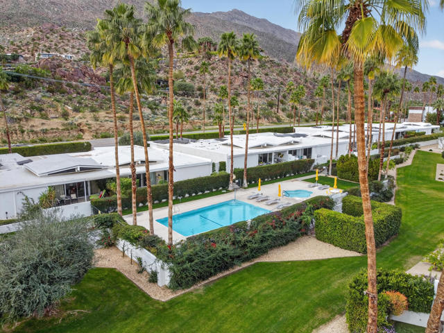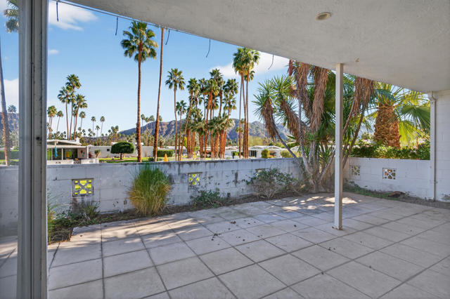 A rare offering in the final phase of William Krisel's celebrated Canyon View Estates, this corporate owned presents the opportunity to restore a true Palm Springs architectural classic. Homes within this intimate 14-residence enclave are rarely available, making this a compelling entry into one of the Desert's most coveted mid-century communities, ideally situated in one of Palm Springs' most desirable locations.Spanning nearly 2,000 square feet of interior living space and complemented by a two-car garage, the home offers a substantial footprint with a flexible layout well suited for reinvention. The iconic pop-up umbrella roofline and clerestory windows introduce abundant natural light throughout the day while framing sweeping desert and mountain views from nearly every angle.The floor plan features a generous living and dining area, a primary suite, a spacious second bedroom, a third bedroom or den, and two bathrooms. Many original architectural elements remain intact, providing a strong foundation for a thoughtful restoration or a refined modern update that respects the home's mid-century origins.The large kitchen with breakfast nook, along with the surrounding interior spaces, is ready for a full refresh--offering a blank canvas for buyers seeking to create a home that reflects their own vision while honoring the integrity of the original design.A private covered patio extends the living space outdoors, where elevated views stretch toward Southridge, Andreas Hills, and the surrounding Palm Springs setting. Residents enjoy access to the community's resort-style pool and spa, all within a peaceful, low-density enclave discreetly set behind a lush green hedge for privacy and quiet.Built in the late 1960s, Canyon View Estates HOA #7 is distinguished by its signature use of breezeblock and stone--hallmarks that continue to attract architecture enthusiasts from around the world. Several homes within the enclave have also been featured in Modernism Week neighborhood tours since 2022.Offered at a price that reflects its current condition, this is an uncommon opportunity to acquire a Krisel-designed residence with substantial upside, ideal for buyers prepared to undertake a meaningful renovation within one of Palm Springs' most architecturally significant communities. Investor offers will not be reponded to until February 28th.