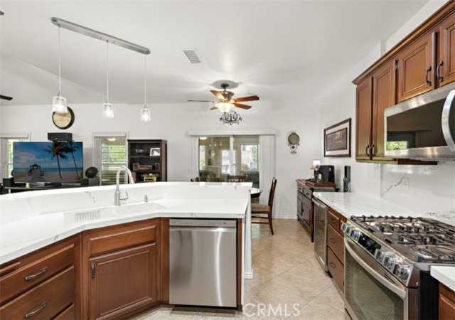 Listed betweeen $798,000 - $850,000! There is an ease to this home that you feel almost immediately. Set back in a quiet pocket of the Creekside West neighborhood, it sits in one of the most convenient locations of the Inland Empire, close to dining, shops, and everything a busy household needs, with quick access to major freeways. It is the kind of location that quietly makes everyday life run more smoothly. Inside, the home opens with natural light, high ceilings, and fresh paint that gives the spaces a bright, welcoming feel. A separate dining room and distinct living and family rooms create space to gather or unwind, with a fireplace adding warmth and a natural focal point. The kitchen has been thoughtfully updated with a new quartz counter slab, a new sink and faucet, stainless steel appliances, and a wine refrigerator, all anchored by a breakfast bar and a casual dining nook. Sliding glass doors connect the kitchen to the enclosed patio while french door lead to a covered patio area, making the indoor outdoor flow effortless for gatherings, weeknight dinners, and warm weather weekends. A main floor bathroom includes direct access to the backyard, making pool days and outdoor living especially convenient. The primary suite feels like its own retreat with a fully refreshed bathroom featuring a new porcelain shower surround, glass enclosure, porcelain flooring, quartz counters, new sinks, and updated fixtures. The additional bedrooms carry the same fresh, cohesive feel, each with new paint, and the secondary bathrooms offer granite counters and updated finishes. The backyard is where the home truly shines. A saltwater pool, spa, outdoor fireplace, full outdoor kitchen, and an Alumawood covered spa area create a setting designed for both relaxing and entertaining. An in ground pond adds a calming note, and the home’s upgraded solar system provides efficiency and peace of mind. The Creekside West community offers a lifestyle of its own with two pools, tennis courts, playgrounds, a clubhouse, a catch and release lake, and basketball courts. It is a neighborhood where families grow, neighbors connect, and weekends feel a little more relaxed. This home checks all the boxes and is the best home on the block! It is move in ready, beautifully updated, and waiting to be part of someone’s next chapter.