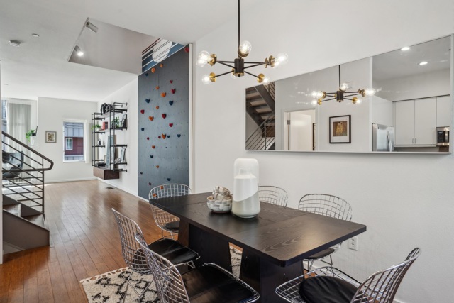 Modern townhouse living in Temescal! Exceptional build quality and design with a very user friendly layout, this sunny and spacious end unit hits all the high notes. The entry level features an attached garage for safety and storage, a bedroom with full bathroom and access to the serene private patio with a mature maple tree, great for guests, home office or bedroom suite. The second level features an open living, dining and kitchen area, high ceilings, tons of light, half bathroom, plus a dramatic two story atrium with a fun climbing wall! Upstairs are two spacious bedroom suites, including a primary with a generous walk in closet. Close to favorite Temescal, Rockridge and Piedmont Avenue shops and restaurants, parks and trails, and convenient transportation options. 96 Walkscore and 98 Bikescore!