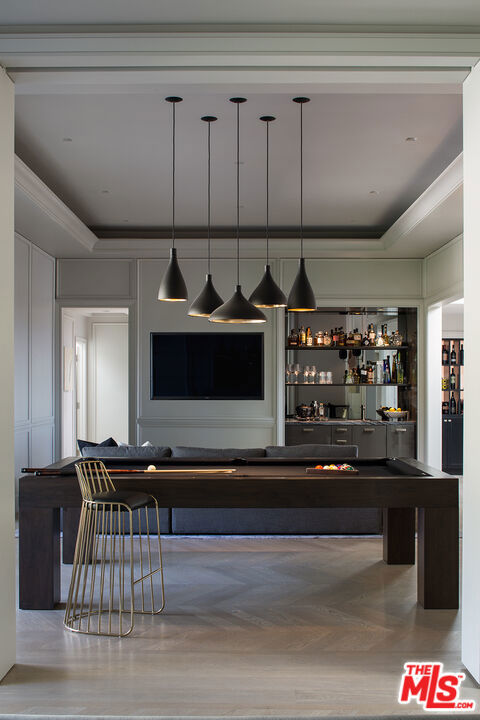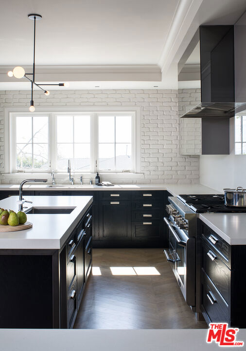 Beautifully renovated single-story California Ranch home situated on a large lot in prime Huntington Palisades. This elegant 5-bedroom, 4.5-bath residence plus office offers an exceptional open floor plan and seamless indoor/outdoor living. The gourmet kitchen features top-of-the-line appliances, a breakfast bar, and a built-in banquette, and opens to a spacious family room with custom built-in entertainment center. Expansive glass sliding doors lead to a covered patio with built-in heaters and a beautifully landscaped backyard with mature trees, fire pit, pool, and spa, ideal for entertaining and everyday enjoyment. The home also offers a formal dining room and a living room with fireplace overlooking the garden. The elegant primary suite includes a luxurious spa-like bathroom and walk-in closet. In addition to four secondary bedrooms and three and a half baths, there is a dedicated home office with extensive built-ins. Additional features include ocean and city light views, high ceilings, multi-zone HVAC, hardwood floors, and a three-car garage with direct access. A rare opportunity to live in one of the most sought-after neighborhoods on the Westside and enjoy the best of the California lifestyle.