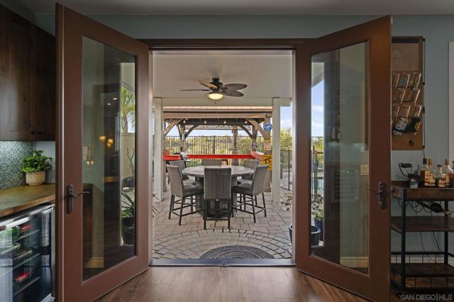 Luxury Otay Ranch Living in Gated Community with Guard & Stunning Views Experience refined living in this upgraded Otay Ranch home in a gated community with nighttime guard service, offering privacy, security, and panoramic sunsets. Luxury vinyl flooring by Empire Flooring flows through an open, bright layout designed for modern living and entertaining The gourmet kitchen features high-end cabinetry, granite countertops, stainless steel appliances, under-mount sink, designer tile backsplash, premium stove hood, and built-in wine/beverage fridge. A custom espresso/coffee bar adds elegance. Upgrades include ceiling fans, mounted TVs, custom interior/exterior lighting, Ring alarm system, and remodeled bathrooms with upgraded vanities, custom glass showers, new fixtures, vanity mirrors, and tile floors. Upstairs has a library/office; downstairs offers flexible space convertible to a 4th bedroom or office. Walk-in closets feature built-in drawers and white shaker cabinetry. The 3-car garage offers versatility, with one space customized as a gym or game room. The private backyard retreat boasts a heated pool with new heater, expansive pavers, covered aluminum patio, gazebo, new outdoor storage, and custom lighting—perfect for entertaining. Additional highlights include owned solar, EV charger, upgraded sub electrical panel, newer A/C and furnace (~2 years old), and breathtaking views. An exceptional opportunity to own luxury and lifestyle in one of Otay Ranch’s most desirable communities.