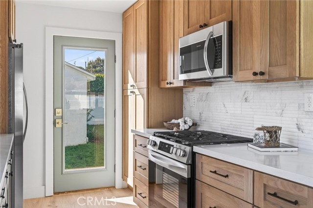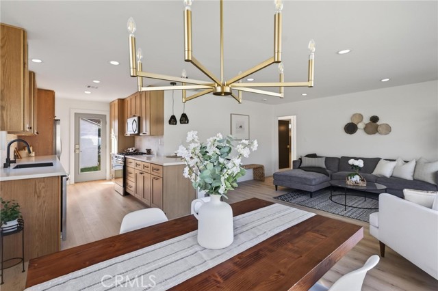 Fully remodeled with warm, modern style, 21405 Mildred Ave offers turnkey living in the heart of Torrance’s desirable Southwood neighborhood on one of the most coveted streets. This 3-bedroom, 2-bathroom home has been thoughtfully updated from top to bottom, blending charm, comfort, and functionality in one inviting package. At the center of the home, a beautifully redesigned kitchen features white oak shaker cabinets, quartz countertops, tile backsplash, and stainless steel appliances—all chosen for both style and durability. Both bathrooms have been fully remodeled with double vanities and tasteful finishes, including new tile work, updated fixtures, and a glass-enclosed shower in the ensuite. The laundry area is conveniently located near the bedrooms, and a sliding glass door from the rear bedroom leads out to a brand-new wooden deck and oversized backyard—freshly landscaped to provide a sunny play space with the perfect trees offering afternoon shade. Natural light fills the interior, highlighting the soft neutral tones, recessed lighting, and brand-new laminate flooring that flow throughout. Fresh exterior paint and clean curb appeal round out the home’s welcoming first impression. Additional upgrades include: new HVAC and ducting, upgraded 200-amp electrical panel, new wiring, updated plumbing, new windows and exterior doors, interior doors and hardware, modern light fixtures and ceiling fans, finished garage, and a new automatic sprinkler system. All of this just minutes from award-winning Torrance schools, local parks, shopping, dining, and the beach—this is South Bay living at its best, combining everyday ease with a move-in ready finish.