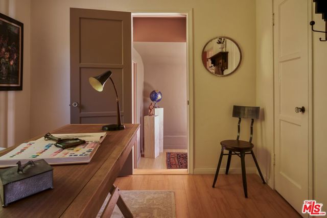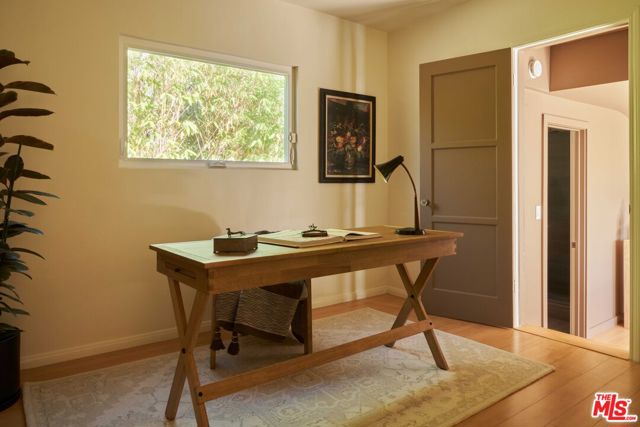 1940s traditional in University Hills with mountain and skyline views. Perched above the street, this 3-bedroom, 2-bath home has an impactful presence with its Streamline Moderne elements of strong horizontal lines and a curved overhang. Although the home is on a hillside, there's ample flat and usable areas to enjoy the Southern California sun. Approaching the home, you are greeted by a front yard with drought tolerant plants screening you from the street, native grasses and flowering mallow plants. The connection to the outdoors continues inside with a direct sight line to the backyard and numerous windows flooding the rooms with light and captivating skyline views. The kitchen has been thoughtfully redesigned and features new cabinetry, appliances and stainless steel countertops. The adjacent dining area is cozy with a wood banquette seating area. At the opposite end of the home are the bedrooms and two updated bathrooms with a warm neutral palette and timeless materials like marble and travertine. Flowing easily from the kitchen, is an oversized glass door that leads to a private back patio space. To the side of the house is a detached studio - perfect for a home office or creative pursuits. There's additional outdoor space for dining or lounging that overlooks the majestic San Gabriel mountains. When not enjoying your peaceful hillside home, you are only moments from local favorites like lil'East Coffee, Tirzahs Mexi-Terranean, Evil Cooks, Artemisia Nursery, Los Dorados LA, Correas Mariscos & Cocina, Holy Grounds Coffee + Tea or a short drive to other hip east side neighborhoods. If you are looking for a well designed hillside house with great outdoor space and views, this is your spot!