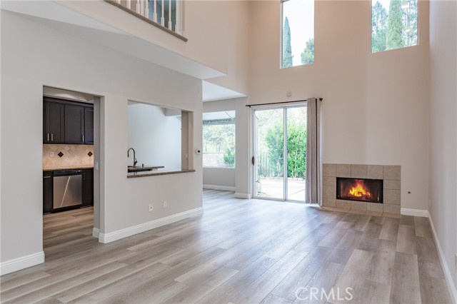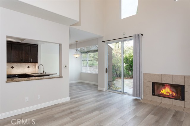 Step into this light and bright 3-bedroom, 2.5-bathroom townhouse nestled within a secure gated community. The home features soaring vaulted ceilings and elegant wood flooring throughout the lower level, centered by a living room with a cozy fireplace and a dedicated dining nook. A modern kitchen boasts dark wood cabinetry, granite countertops, stainless steel appliances, and recessed lighting. All bedrooms are conveniently located upstairs, while the exterior offers a relaxing private backyard and a 2-car attached garage. Perfectly situated, this home provides quick access to local shopping, top-rated schools, hiking trails, and the toll road.