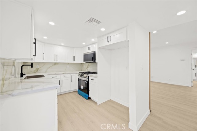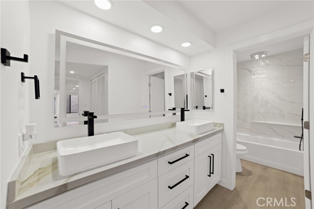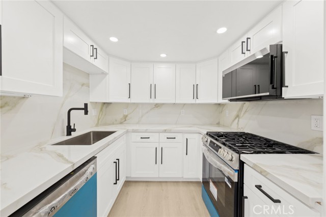 Welcome to this beautifully reimagined 3-bedroom, 2-full-bath corner-unit condo located in one of Sherman Oaks’ most desirable neighborhoods, just moments from the 134 Freeway, premier shopping, dining, and entertainment. Designed with both style and comfort in mind, this home offers a warm, welcoming, and truly “homely” feel the moment you step inside. The light-filled open floor plan showcases new flooring throughout, matte-black accented cabinetry, and striking Calcutta countertops with a full designer backsplash that elevate the kitchen to a modern showpiece. Stainless steel appliances complete the sleek, contemporary look, making the space as functional as it is beautiful. Enjoy customizable ambiance with color-changing recessed lighting throughout the living areas, perfect for entertaining or relaxing at home. The spa-inspired bathrooms feature LED illuminated mirrors and a luxurious soaking tub, offering a serene retreat at the end of the day. With its premium upgrades, prime location, and inviting atmosphere, this exceptional condo is the perfect blend of modern elegance and everyday comfort—an ideal place to call home in Sherman Oaks.