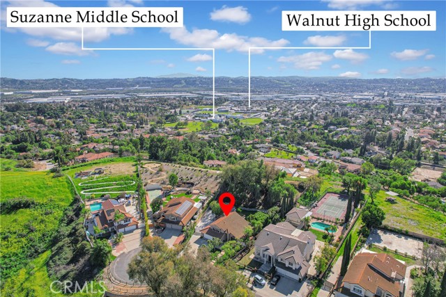 Pride of ownership—original owner, first time on the market! This one-of-a-kind south& north facing estate sits on an almost 30,000 sq ft oversized lot, fully landscaped grounds. Nestled in the rolling hills of one of Walnut’s most desirable and private neighborhoods, the home is located within the award-winning Walnut School District with Westhoff Elementary. Tucked away on a quiet cul-de-sac with no homes across the street, it offers rare privacy and tranquility. This exquisite 4-bedroom, 3-bathroom home with a 3-car garage is truly turnkey and includes a Tesla charger. Meticulously maintained and tastefully renovated over the past decade with luxurious upgrades, this residence stands out in every detail. Upon entry, soaring cathedral ceilings welcome you into elegant living and dining spaces with a seamless flow. The home features travertine flooring throughout the downstairs and on the wide staircase leading to the second floor, along with a cozy fireplace in the family room, creating a warm and inviting atmosphere. The upgraded modern kitchen overlooks the lush backyard and features granite countertops, custom cabinetry, and ample storage. The expansive primary suite is a serene retreat, offering a large private deck with views of the manicured yard and city night lights, plus direct backyard access. The upgraded primary bathroom includes a soaking tub, separate shower, dual vanities, and a spacious walk-in closet. Step outside to your private backyard oasis, an expansive, mostly flat retreat designed for both relaxation and entertaining. Highlights include a built-in Spanish-style BBQ, generous patio and seating areas, professional landscaping with a lush lawn, mature trees, large RV parking and abundant space for future expansion, including a potential ADU on the elevated flat area beyond the current yard, featuring panoramic hilltop views overlooking the entire city of Walnut. Major upgrades include: • New roof (2022) • Whole-house repiping (2021) • Water heater replacement (2021) • Professional interior & exterior painting (2023) • Kitchen, all three bathrooms, flooring, and staircase travertine upgrades completed within the past 10 years • Front and backyard paving stone walkways and professional landscaping and A/C system (compressor & furnace) upgraded within the past 15 years. Conveniently located near schools and shopping, yet set in an ultra-quiet, secluded neighborhood. A rare opportunity—this exceptional home truly won’t last.