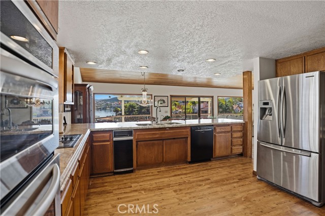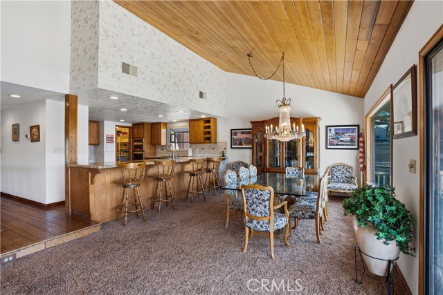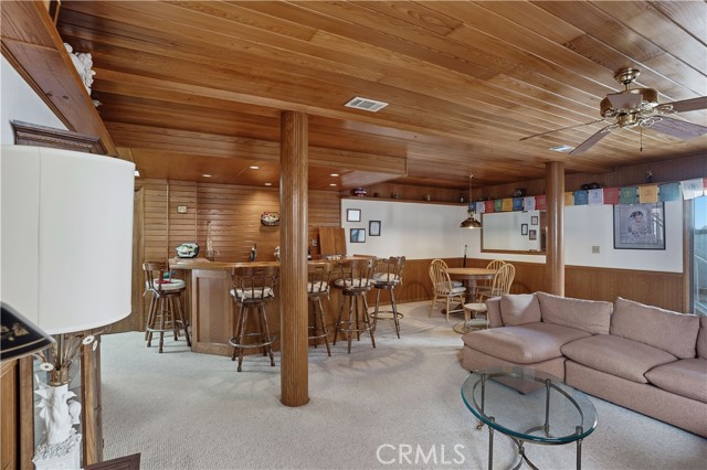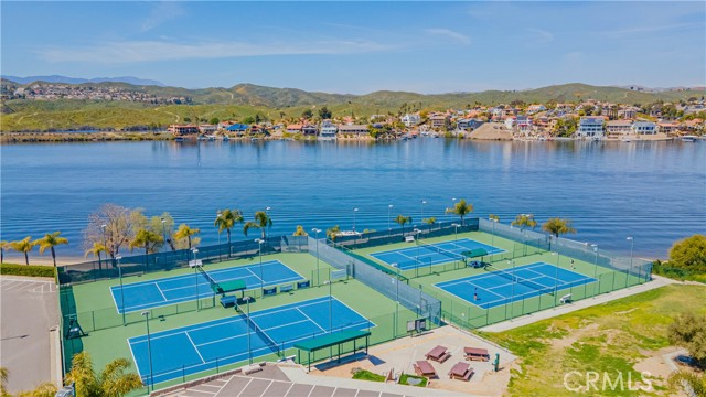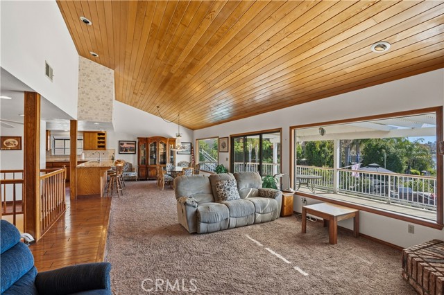 Amazing location in a peaceful cove on the Main Lake of Canyon Lake! This WATERFRONT home has 3 bedrooms, office and huge game room/bar and boasts beautiful views of the lake and cove from both levels and the backyard. Enjoy an open floor plan on the main level with a living room, dining area and large kitchen. There is also an office and bathroom on this level. Sit by the fireplace in the living room or entertain on the deck as you watch the sun set over the lake. The wood plank ceilings add warmth and character to this charming lakehouse. Downstairs you will find three bedrooms as well as a fun wet bar/ game room with its own outdoor sitting area! The primary bedroom has a cozy fireplace also walks out to the immaculate backyard. Take the landscaped path down to your private dock in a sought-after sheltered cove. This is PARADISE! 2 Car Garage with room in drive for additional vehicles, boat or RV. Canyon Lake is a gated golf and lake community with parks, a country club, events and activities each month, an equestrian center, ski lakes, baseball field, dog parks, pickleball, basketball courts, tennis courts, a lakeside campground and so much more. The Lighthouse Restaurant and Bar offers indoor and outdoor dining and event space right beside an Olympic-sized pool, sandy beaches and play area. Near the community you can hike, bike, shop and enjoy the best of the Southern CA lifestyle! Furniture Negotiable and Sold AS IS.