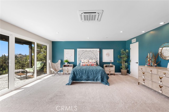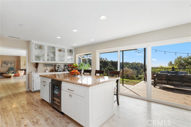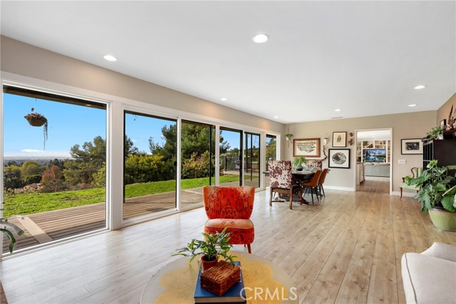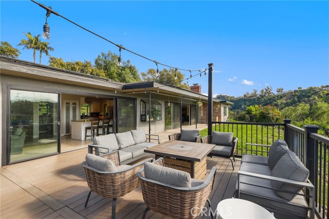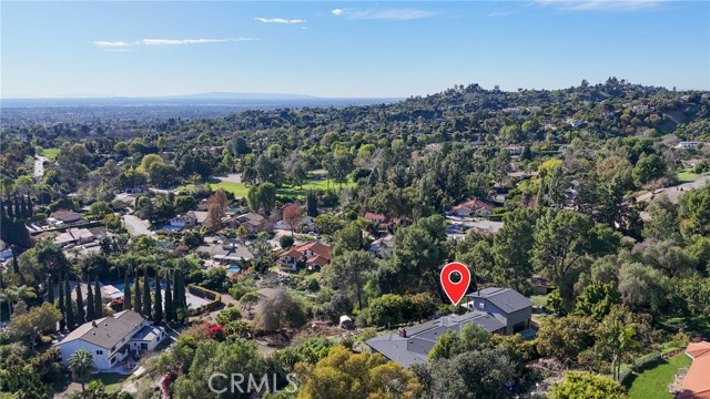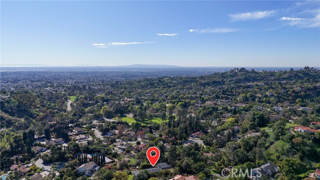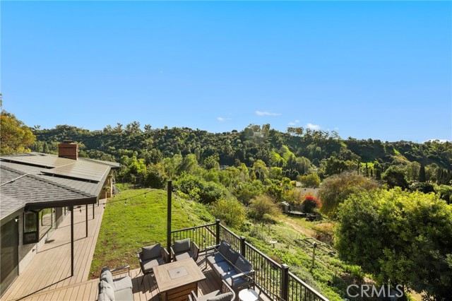 Tucked at the end of a private road, 1918 Chandos Lane offers sweeping Catalina, golf course, and rolling hills views in a peaceful rural setting with convenient access to Los Angeles and Orange County. Designed to maximize natural light and scenery, the home features an open floorplan with spacious rooms and every room oriented to capture the views. The kitchen is the heart of the home with abundant cabinetry, 36 inch wolf range, a large center island, and an open flow into the expansive family room that features custom built-ins. Double sliders extend the living space to over 800 sq ft of Trex decking, perfect for entertaining. A formal dining room connects seamlessly to the formal living room with a classic mid-century fireplace. Upstairs, the 600+ sq ft primary suite includes a balcony, gas fireplace, walk-in closet, and ensuite bathroom. The downstairs includes two updated bathrooms, two oversized secondary bedrooms (approx. 12’ x 15’ each), and a homework desk nook to complete the layout. A flexible bonus room with an outside double door entrance is ideal for a home office, gym, or storage, but is currently used as a game room. Plus, there is a separate laundry room and ample storage throughout the property. Recent upgrades include a new roof with 33 owned solar panels (NEM 2.0), EV charger, new heat pump HVAC, and an upstairs mini-split system. The usable land supports agriculture, horses, chickens, or other pets and livestock, and the terraced garden areas include 5 varieties of mature citrus trees, macadamia nut trees, along with younger stone fruit and fig trees. Enjoy summer music from the nearby park and consider joining the world class Hacienda Golf Club. A rare opportunity to enjoy views, privacy, land, and modern efficiency in sought-after La Habra Heights.
