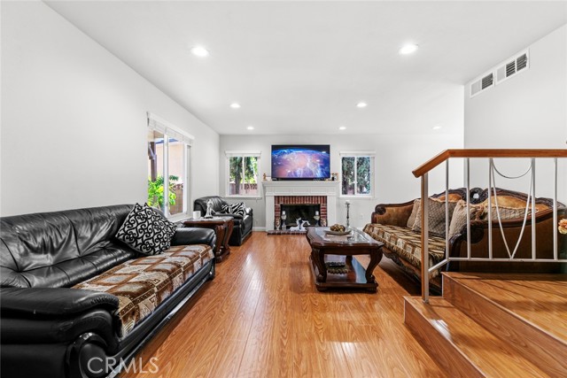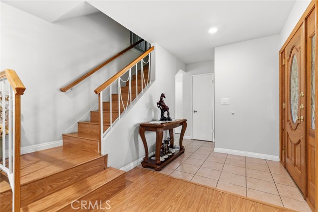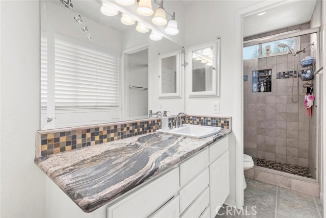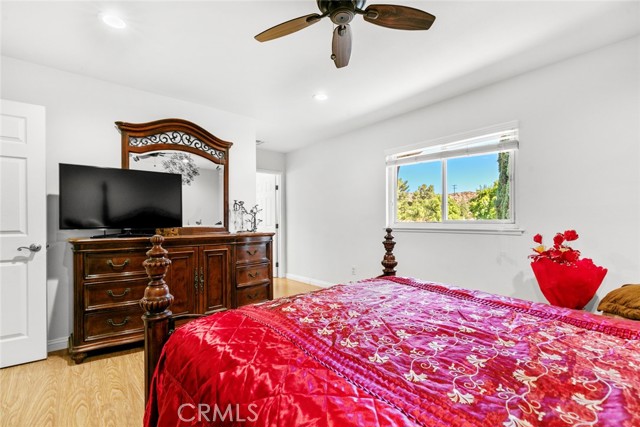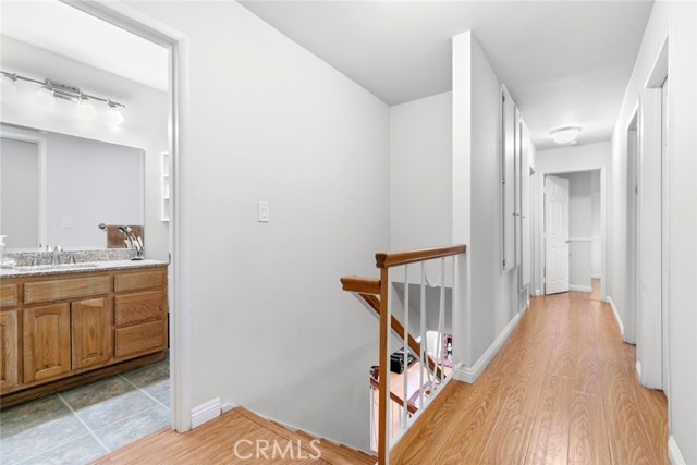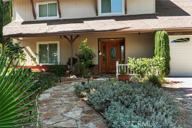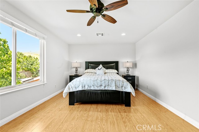 Welcome to this stunning 4-bedroom, 3-bathroom two-story home nestled in a serene and sought-after neighborhood near the base of Bouquet Canyon. With 2,071 square feet of thoughtfully designed living space, this beautifully updated home offers the perfect blend of comfort, style, and flexibility. Step inside to discover a home full of modern upgrades, including laminate flooring throughout (no carpet), freshly painted walls, new window shades, and recessed lighting in every room. Dual-paned, energy-efficient windows invite an abundance of natural light into the entire home. The fully renovated kitchen is truly a showstopper, wide, spacious, and bright, with numerous large windows and plenty of counter space, perfect for both everyday meals and entertaining. The living room features a cozy fireplace and an inviting atmosphere for gatherings. Upstairs, you’ll find all four bedrooms, including a spacious primary suite with a walk-in closet and a completely remodeled en-suite bathroom. One of the secondary bedrooms was originally two separate rooms and still features two doors, two closets, and two windows offering the potential to easily convert it back into a fifth bedroom if desired. Downstairs, you’ll find the third bathroom with a brand-new vanity, ideal for guests or daily convenience. Enjoy a generous backyard retreat adorned with fruit and decorative trees, plus a private spa where you can relax and unwind. The front yard has been thoughtfully designed with drought, tolerant landscaping for beauty and water efficiency.Additional highlights include a large attached garage, two-story layout with all bedrooms upstairs, and a quiet, family-friendly neighborhood close to top-rated schools, scenic parks, and all the outdoor recreation Santa Clarita has to offer. Best of all, this home has no HOA fees and no Mello-Roos taxes — keeping your monthly costs lower and your freedom greater. This move-in ready home offers flexibility, upgrades, and space — all in a peaceful, desirable location.