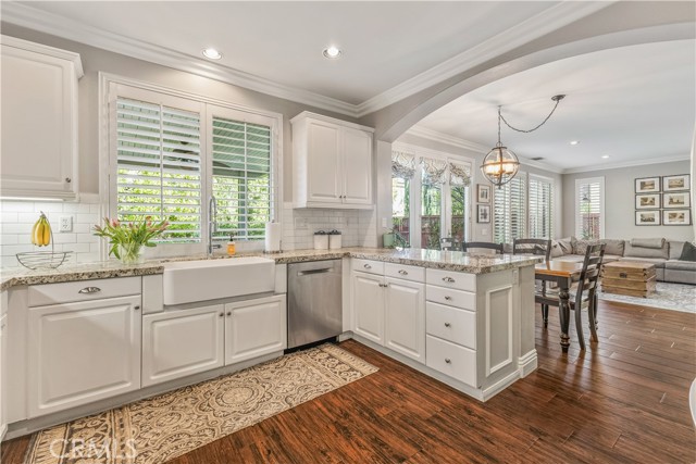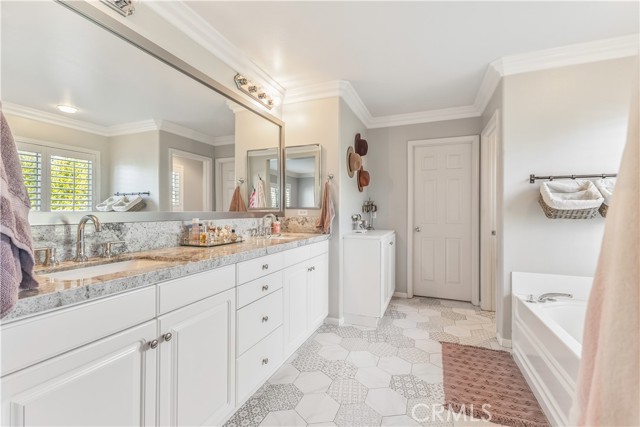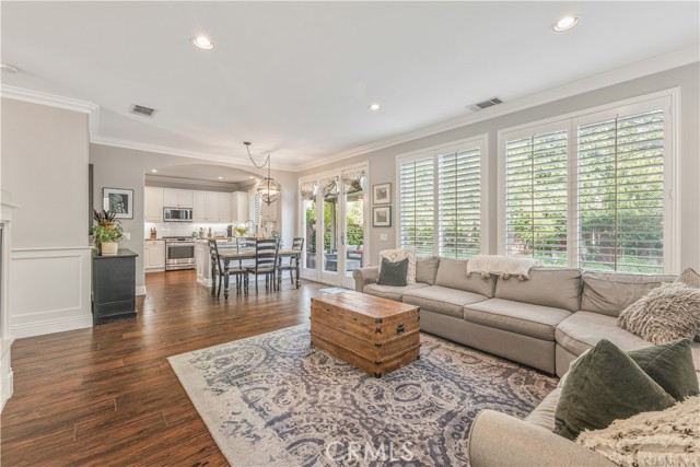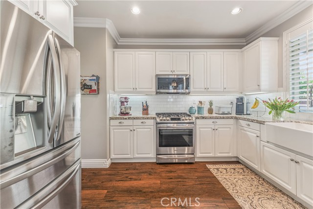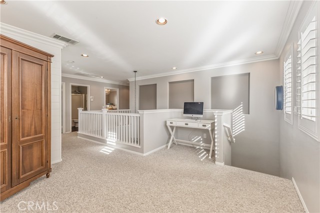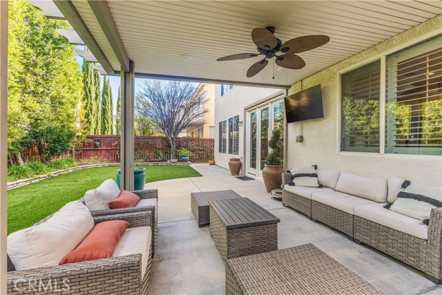 Turnkey, refined, and impeccably maintained, this elegant 3-bedroom, 3-bath Fair Oaks Ranch home offers 2,086 sq ft of elevated living and is tucked away on a quiet cul-de-sac in a highly desirable neighborhood. Thoughtfully renovated and showcasing true pride of ownership, this home blends timeless style with modern comfort. The open, light-filled floor plan features rich beveled tile flooring with the look of dark hardwood and a beautifully appointed kitchen with granite countertops, farmhouse sink, stainless steel appliances, and an inviting eat-in breakfast nook. No detail has been spared — crown molding, baseboards, & wainscoting all professionally installed by Hahnco, plantation shutters throughout, and recessed lighting. Upstairs, a large and spacious loft provides the perfect secondary living area, home office, or media space, along with the convenience of an upstairs laundry room. The luxurious primary suite is a true retreat, offering a generous bedroom, large granite counter top vanity with dual sinks, designer tile, a separate soaking tub and shower, and a walk-in closet. The private backyard is beautifully landscaped with mature trees, offering a serene and private setting complete with a large covered patio ideal for outdoor entertaining, along with low-maintenance turf for easy year-round enjoyment. Plus, there is a separate room downstairs and full bathroom! Conveniently located near Target, Lowe’s, Costco, Trader Joe’s, and a variety of local shops and restaurants, with easy access to the 14 freeway. Too many upgrades to list — this is a home you’ll want to experience in person. A rare, move in ready opportunity in a highly desirable location.