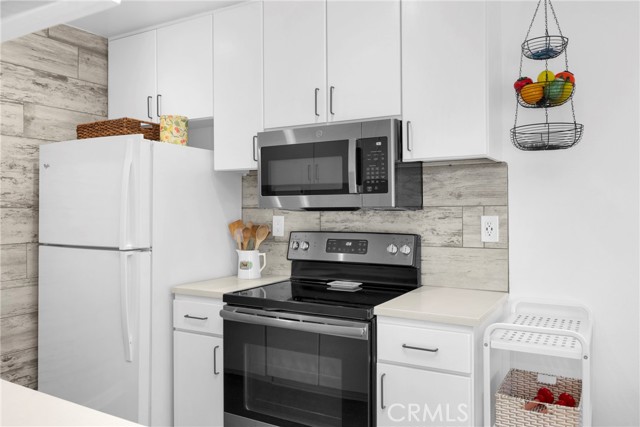 Welcome to Village on the Green, a Gated Resort-Style Community! This unit offers one of the best golf course views in the complex! This is turnkey unit features Country Collection Laminate Flooring, Double Pane Windows, Recessed Lighting and beautiful natural light. The living area showcases a Custom Sliding Barn Door Shutter, that adds a touch of rustic-modern character providing stylish privacy. The kitchen and bathroom have been thoughtfully designed with matching designer back-splash that creates a seamless flow throughout the home. Enjoy the over-sized primary bedroom with a large walk -in closet and plenty of storage for a couples full wardrobe. Resort-style amenities include Gated Entry, Out Door BBQ, Firepit, Pool, Spa, Gym, Clubhouse, and Laundry rooms. Come live where every day feels like a holiday!