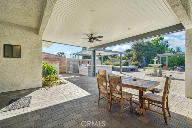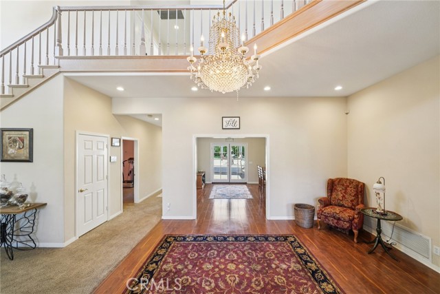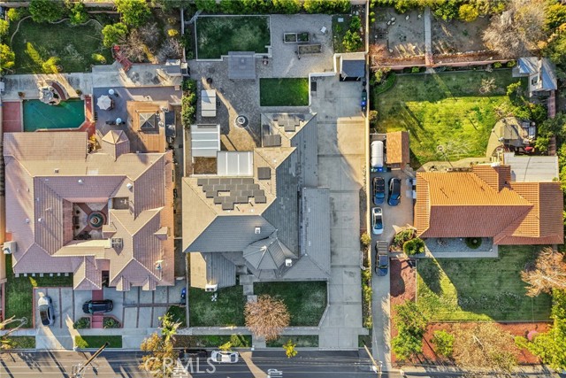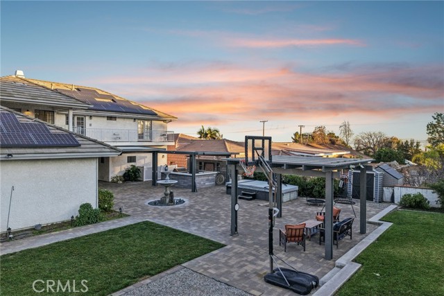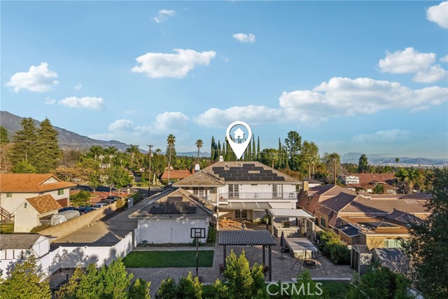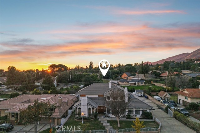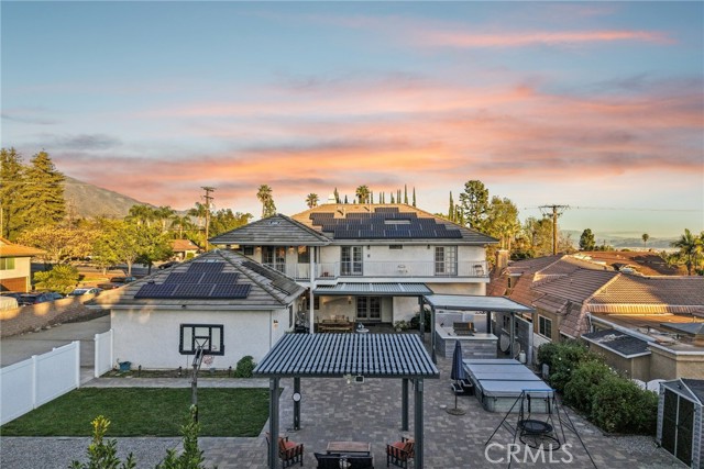 Welcome to your new home! Nestled at the foothills of prestigious San Antonio Heights, where Mt. Baldy's snow-capped peaks create a stunning year-round backdrop—is a custom 4,451 square foot home with incredible curb appeal, timeless charm, and the backyard of your dreams. Walk through the front double doors to a sizeable foyer with soaring ceilings and a grand staircase that makes an unforgettable first impression. Natural light dances off the full mirrored wall in the formal dining room, complete with elegant French doors. Down the hallway you'll find a bedroom with high ceilings and a ¾ bathroom, perfect as guest quarters or a home office. The large living room boasts an inviting fireplace and vaulted ceilings with plenty of room for family movie nights. Stylish recessed lighting has been added throughout key living areas, enhancing the home's ambiance day and night. The informal dining room easily holds a table for 10 and sits just off the incredibly spacious kitchen—your home chef's favorite room with its gas stove, endless cupboards, walk-in pantry, granite countertops, and breakfast bar. Just off the kitchen is an enormous bonus room that can hold a pool table on one end, with a ¾ bathroom and large office or 5th bedroom with wet bar on the other. With small modifications, it could serve as separate living quarters. Upstairs you'll find two large bedrooms and a full bathroom with dual sinks for the kids. The exceptionally large primary suite features a fireplace, walk-in closet, dual sinks, glass shower, private toilet, and luxurious oval jetted tub. Each bedroom has French doors leading to a shared balcony with breathtaking mountain views. Recent upgrades provide peace of mind: a brand-new roof and new air conditioning units ensure lasting comfort through every season. The crowning jewel is the backyard. "Grey Haven" is an entertainer's paradise featuring grey pavers, two manicured lawns, three organic garden beds, a large pergola, and an outdoor bar complete with Twin Eagles Grill and Perlick refrigerator. A stunning fountain sets the perfect ambiance, and the 13-foot swim spa seats nine. Custom landscape lighting transforms evenings into magic. This home also features a 4-car garage, leased solar, RV parking, and ¼ share water stock.