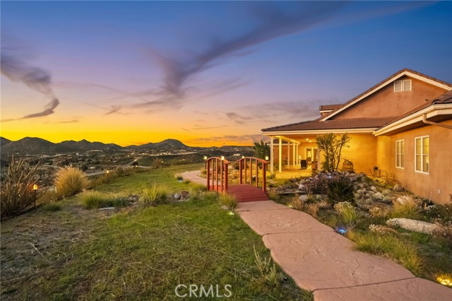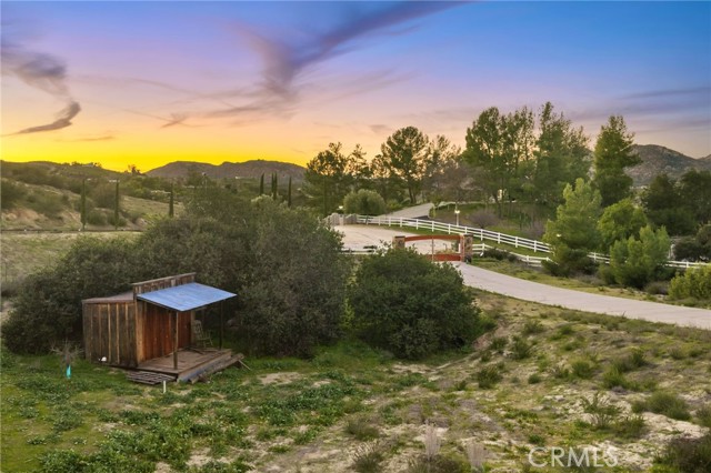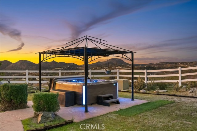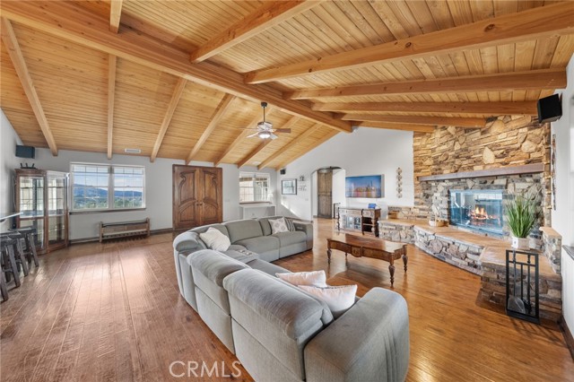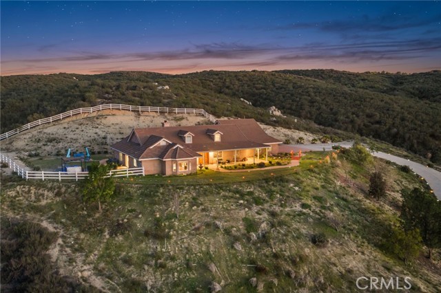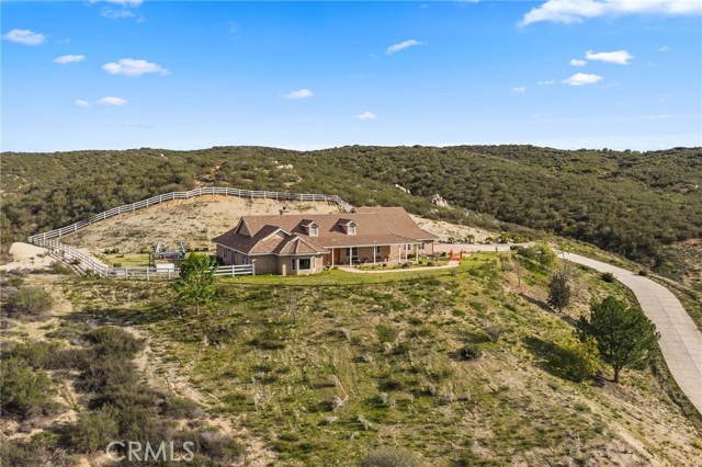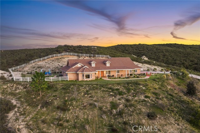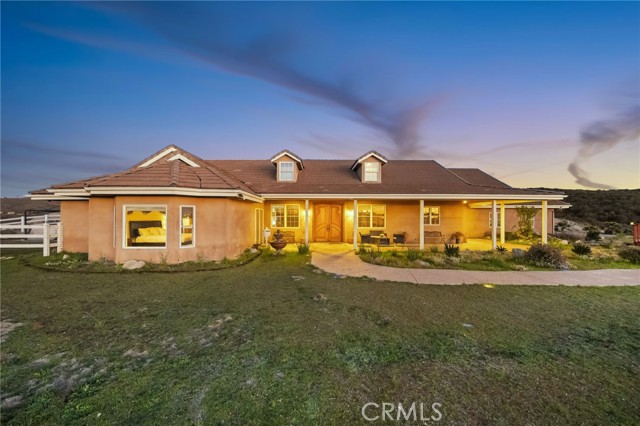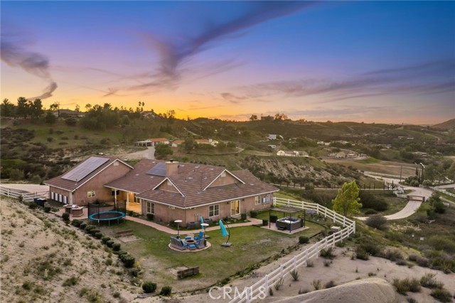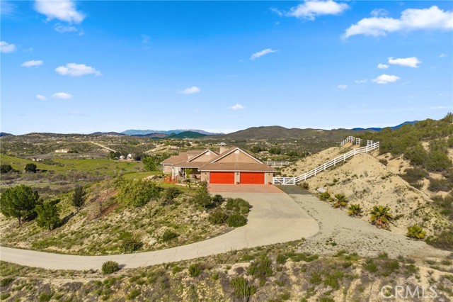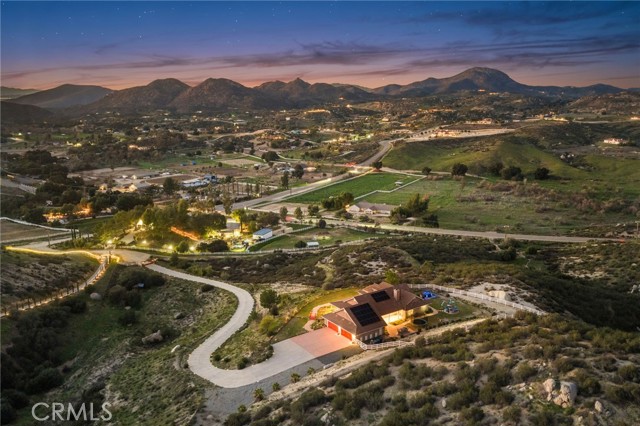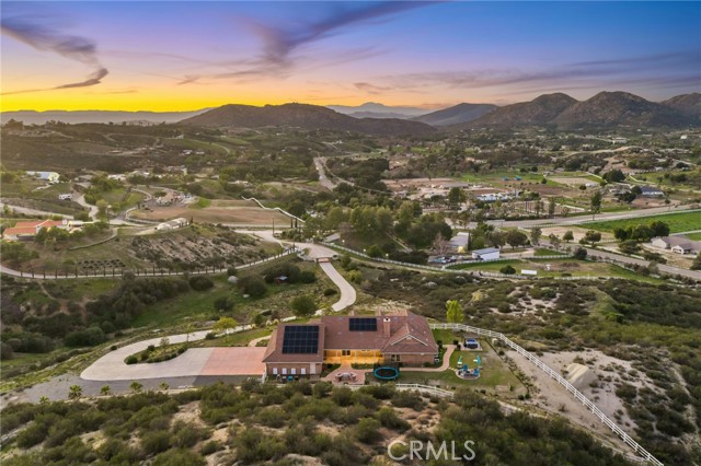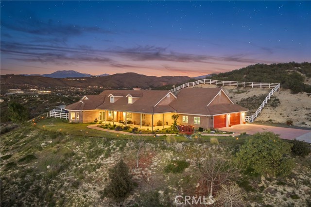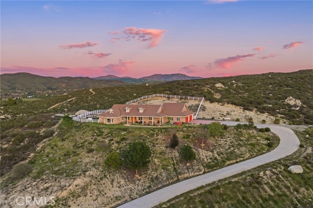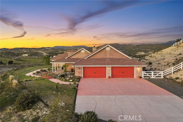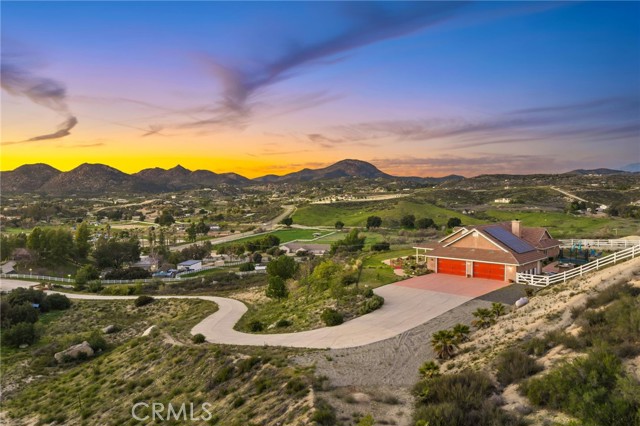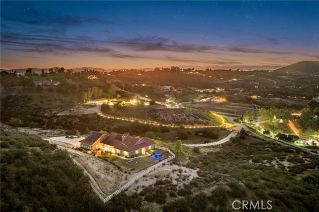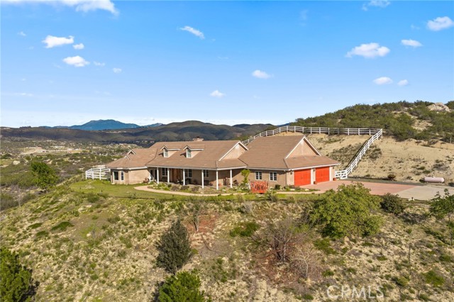 Panoramic Views | 3 Bed + Oversized Bonus Room | Oversized 4-Car Garage... Set in the heart of Temecula Wine Country, this stunning single-story estate offers some of the most breathtaking panoramic views the area has to offer. Built in 2004 and spanning nearly 3,000 square feet, the home features 3 bedrooms plus an oversized enclosed bonus room with direct backyard access perfectly suited as a 4th bedroom, guest suite, or home office and 2.5 bathrooms. The open common areas showcase vaulted ceilings with exposed wood beams, creating a dramatic yet inviting atmosphere, anchored by a massive fireplace in the family room. The primary suite is thoughtfully positioned to capture the sweeping views and opens toward the backyard, offering a peaceful retreat. Two additional bedrooms are connected by a convenient Jack-and-Jill bathroom. Situated on 5 fully usable acres, the property is gated and fully fenced and includes a separate graded pad offering endless possibilities ideal for an ADU, workshop, barn, or horse facilities. An oversized 4 car garage provides ample room for vehicles, storage, or recreational toys. Designed for efficiency and comfort, the home features a 38-panel solar system with 4 batteries, a whole house water filtration system, water softener, and a recently replaced electric Performance Platinum water heater. Outdoors, relax in the above-ground spa with custom LED lighting, perfectly positioned to take in the iconic Wine Country sunsets. With unmatched views, thoughtful upgrades, and incredible potential both inside and out, this property is a rare opportunity to create your dream lifestyle in Temecula Wine Country.