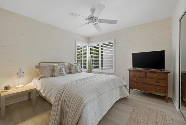 Experience Desert Living at Its FinestStep into this stunning 3-bedroom, 2-bath modern contemporary home where thoughtful design meets effortless comfort. A beautifully manicured front entry with seating creates an inviting first impression and the perfect spot to enjoy quiet mornings.Inside, the open-concept living space is elevated by vaulted ceilings, recessed lighting, and a striking designer chandelier paired with custom wallpaper for a truly curated feel. Porcelain wood-look tile flows throughout, complemented by ceiling fans in every room for year-round comfort.The chef's kitchen shines with stainless steel appliances and seamless connection to the main living areas--perfect for entertaining. Automated custom roller shades and bedroom shutters add both style and privacy, while beautifully remodeled bathrooms bring a spa-like touch. The spacious primary suite features a large walk-in closet designed to impress.Soak in breathtaking east-facing mountain views from the backyard, complete with two separate seating areas ideal for morning coffee or evening gatherings. A sunny atrium offers the perfect retreat to relax, read a book, and enjoy the natural desert light.Modern. Inviting. Effortlessly stylish.This is desert living--done right.
